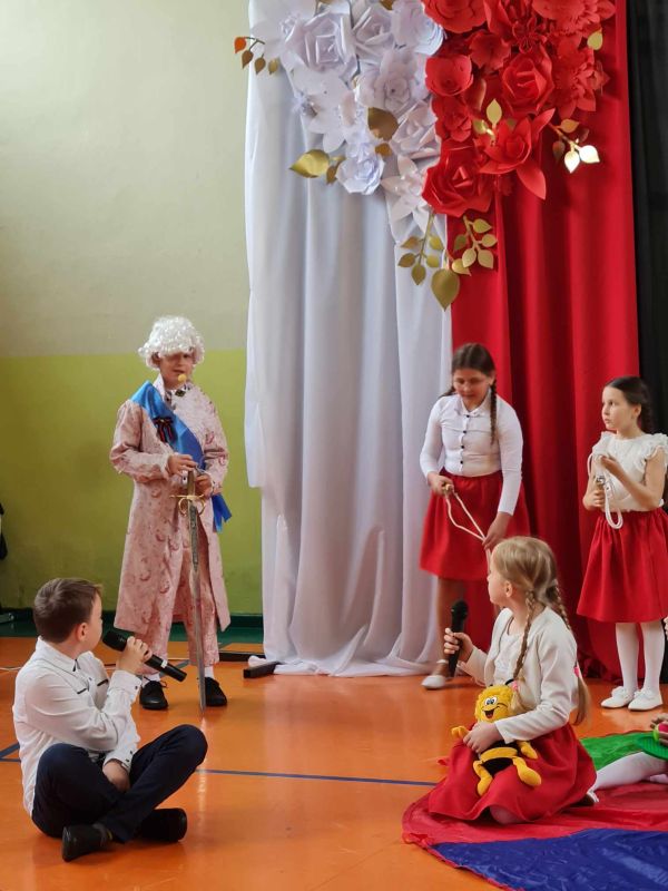 Po wystąpieniu Pana Dyrektora uczniowie klasy 3 a oraz 5 b zaprezentowali program artystyczny, który składał się z inscenizacji teatralnej oraz części taneczno - wokalnej. Widzów szczególnie zachwycił taniec z szarfami w wykonaniu uczennic klasy 3 a oraz piękna scenografia i dekoracja sali gimnastycznej.