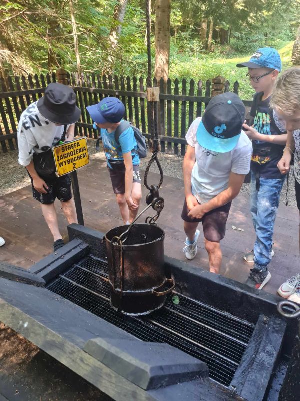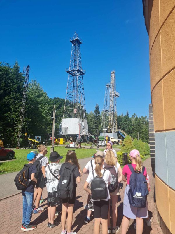 18 czerwca br. klasa IV b wyruszyła na wycieczkę po Podkarpaciu, kierując się słynnym powiedzeniem: "Cudze chwalicie, swego nie znacie". A nie znała najstarszej na świecie kopalni ropy naftowej w Bóbrce, odwiedzanej nawet przez szejków z Arabii Saudyjskiej, czy wycieczki ze Stanów Zjednoczonych, bo to przecież tu się wszystko zaczęło z tym wydobywaniem "oleju skalnego". Sama postać skromnego aptekarza, a zarazem wielkiego wynalazcy i filantropa - Ignacego Łukasiewicza może być wzorem do naśladowania dla młodego pokolenia. Z Bóbrki wycieczkowicze udali się do dworu szlacheckiego w Kopytowej, gdzie zgromadzono liczne pamiątki narodowe, m.in. portret Tadeusza Kościuszki, czy pierwszy banknot, jaki Kościuszko puścił w obieg... Kolejnym punktem programu było lotnisko w Krośnie. Uczniowie zwiedzili hangar z samolotami oraz obserwowali start szybowców. Wycieczka zakończyła się posiłkiem w restauracji McDonald i - jak wszyscy zgodnie stwierdzili - należała do udanych.