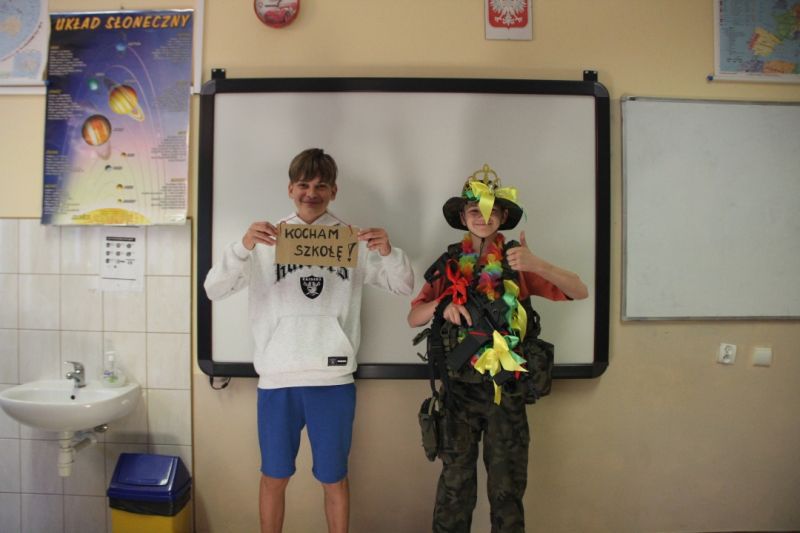 W minionym tygodniu z inicjatywy Samorządu Uczniowskiego odbyły się dwa wydarzenia pod nazwą "Dzień Uśmiechu" oraz "Dzień bez plecaka", których celem było wprowadzenie odrobiny humoru w ostatnie dni roku szkolnego 2023/24. Uczniowie naszej szkoły bardzo chętnie włączają się w tego typu akcje, wykazując się przy tym dużą wyobraźnią i kreatywnością.