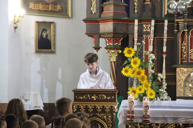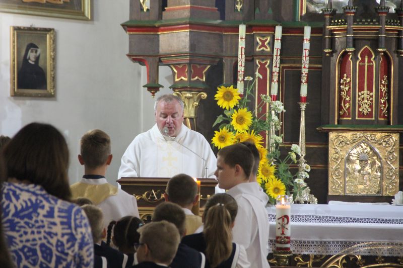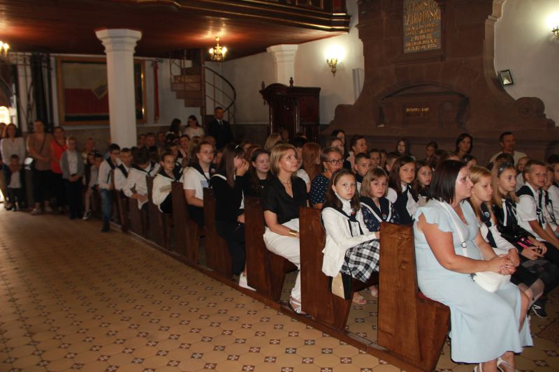 Drugiego września br. zainaugurowaliśmy rok szkolny 2024/2025 Mszą św. w kościele parafialnym w Bieździedzy. Homilię skierowaną do uczniów, rodziców i nauczycieli wygłosił ks. Grzegorz Guzior. Po Mszy św. uczniowie udali się ze sztandarem szkoły na czele do sali gimnastycznej naszej szkoły. Po odśpiewaniu hymnu państwowego Pan Dyrektor Wiesław Jedziniak powitał całą społeczność szkolną - zwłaszcza pierwszoklasistów i przedszkolaków, a następnie wszyscy udali się na spotkania z wychowawcami klas.