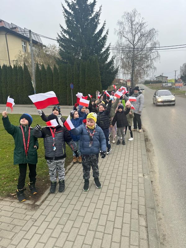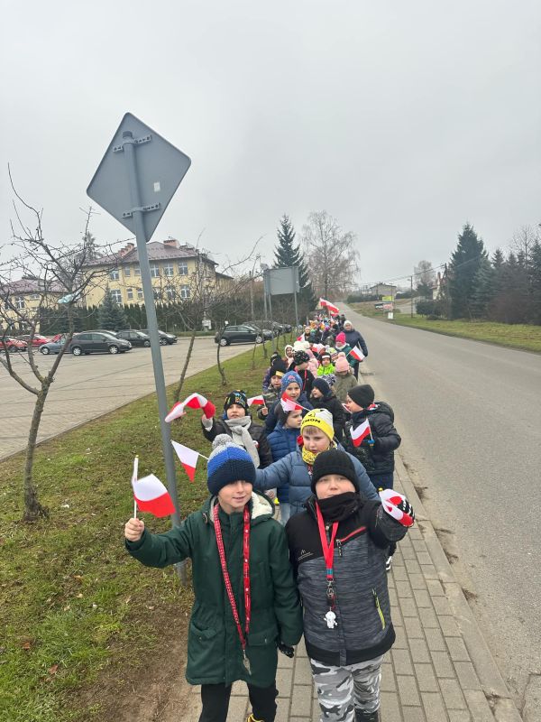 Wzorem lat ubiegłych nasza szkoła zorganizowała Marsz Niepodległości, w którym wzięły udział wszystkie klasy wraz z wychowawcami i nauczycielami. Starsze klasy pomaszerowały z biało-czerwonymi flagami i kotylionami w stronę Kołaczyc (młodsze dzieci miały skróconą trasę). W Rynku, pod pomnikiem ku czci poległych w walce o wolność Ojczyzny, odśpiewaliśmy "Hymn Polski" i odmówiliśmy modlitwy za zmarłych Bohaterów. W drodze śpiewaliśmy także legionowe pieśni patriotyczne.