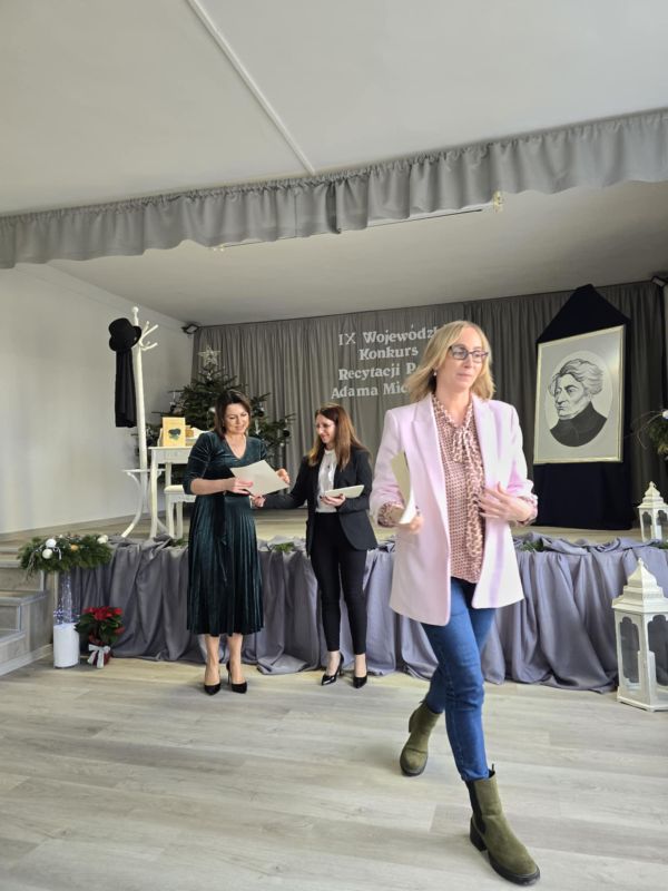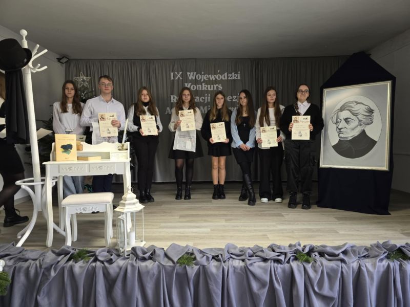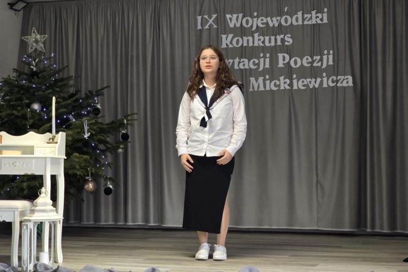13 grudnia 2024 roku nasze uczennice: Maria Biernacka oraz Zuzanna Podgórska z klasy 8 b wzięły udział w IX Wojewódzkim Konkursie Recytacji Poezji Adama Mickiewicza odbywającym się pod patronatem Podkarpackiego Kuratora Oświaty w Rzeszowie. Trzydzieścioro recytatorów interpretowało wiersze wieszcza narodowego oraz fragmenty "Pana Tadeusza". Jury, któremu przewodniczyły panie Zofia Ciomcia oraz starsza wizytator Jolanta Strzępek, podkreśliło wysoki poziom prezentacji. Zuzia Podgórska zdobyła w konkursie zaszczytne II miejsce, czego jej serdecznie gratulujemy, jak również pani Agacie Ochałek-Skałbie, która na zajęciach kółka recytatorskiego przygotowała ją do interpretacji fragmentu "Pana Tadeusza".