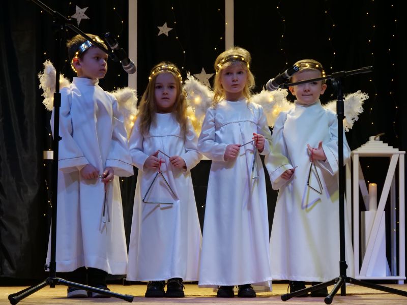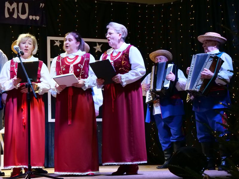 W dalszej części mogliśmy wysłuchać przepięknych śpiewów solistów, duetów, zespołów kameralnych oraz chóru i scholi. Wykonawcy mieli od lat trzech do ponadosiemdziesięciu... Był to wspaniały dialog międzypokoleniowy. Zaproszeni goście wręczali uczestnikom Przeglądu dyplomy i upominki, a Pracownicy Kuchni zadbali, aby wszystkich ugościć „czem chata bogata”.