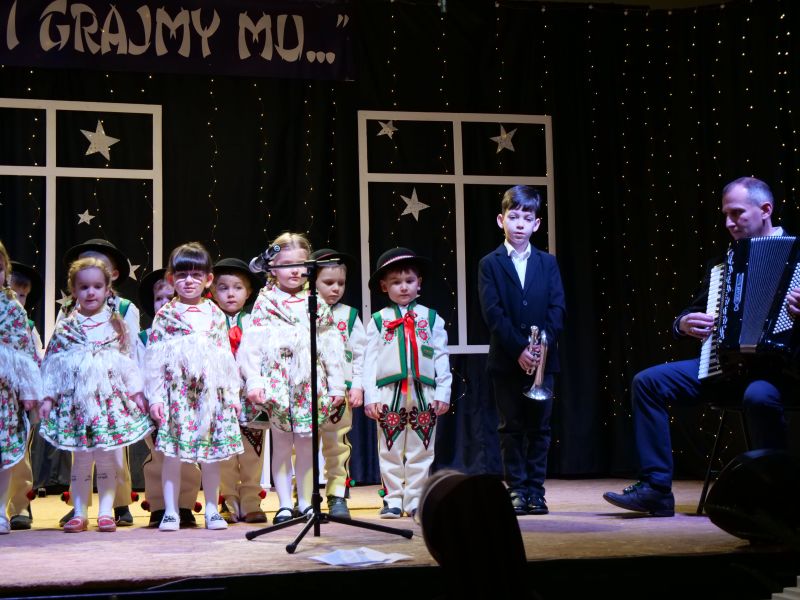 Podążając za słowami wypowiedzianymi przez Jana Pawła II: „Jakże piękne i wzruszające są kolędy, które tradycja wszystkich narodów oplotła wokół Bożego Narodzenia! Ileż w nich głębokich myśli, a nade wszystko – jak wiele czułej radości skierowanej do tego Dzieciątka, które w świętą noc przyszło na świat!”, a zarazem kultywując nasze szkolne tradycje, spotkaliśmy się 6 stycznia 2025 roku na Gminnym Przeglądzie Kolęd, Pastorałek oraz Pieśni Bożonarodzeniowych. Zaprosiliśmy do udziału w nim mieszkańców Gminy Kołaczyce, którzy odpowiedzieli na to zaproszenie, licznie przybywając do naszej szkoły w Święto Objawienia Pańskiego, zwanego Świętem Trzech Króli. Dzień ten - według tradycji - uważany jest za zakończenie okresu bożonarodzeniowego. Dawniej w Święto Trzech Króli w różnych regionach Polski chodzili kolędnicy przebrani za mędrców ze Wschodu. Gospodarze zapraszali ich do środka, słuchali ich śpiewu, a następnie częstowali „czem chata bogata”. Tak było i u nas!