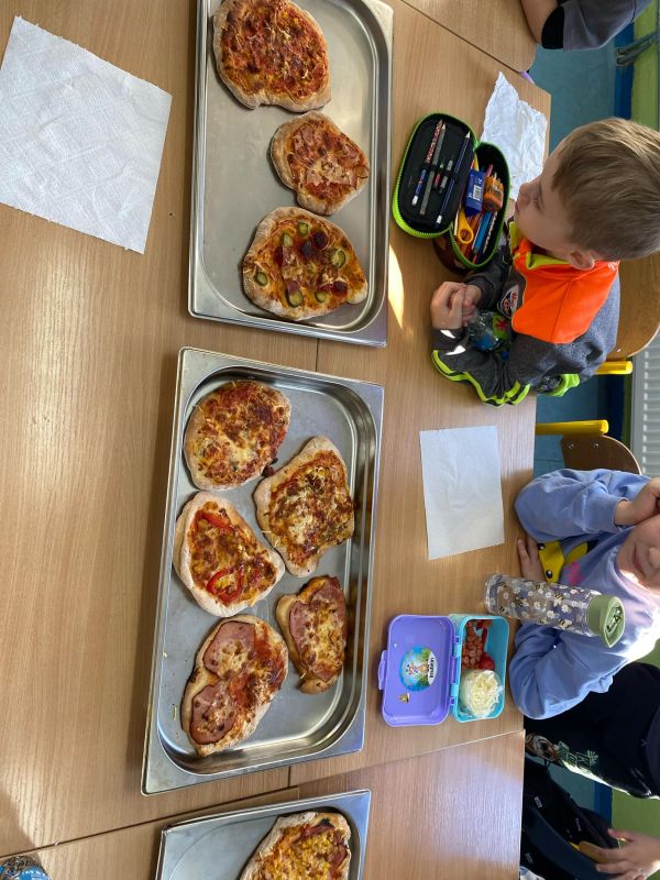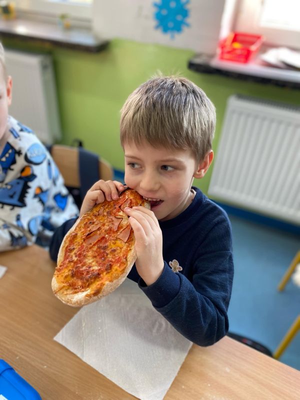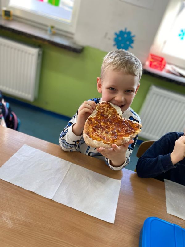 Dzień Pizzy przypada 9 lutego. Pizza jest niewątpliwie jednym z najpopularniejszych dań na świecie. Dlatego 10 lutego uczniowie klasy 0 A, 0 B i 0 C spotkali się w naszej szkolnej jadalni, by przygotować ten pyszny przysmak. Wspólnie zagniatali ciasto, następnie dodawali składniki według własnego upodobania. Najprzyjemniejszy moment to oczywiście czas, kiedy gotowe przekąski lądowały na talerzach. Każda pizza była inna, każda wyjątkowa, przygotowana według indywidualnego pomysłu.