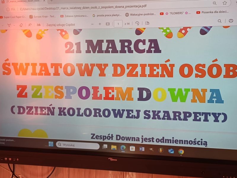 W piątek 21 marca na świetlicy szkolnej obchodziliśmy nietypowe święto pod nazwą DZIEŃ KOLOROWEJ SKARPETKI. Była to okazja do wyrażenia siebie poprzez założenie skarpetek w różnych, zabawnych, kolorach i wzorach. Został przeprowadzony wykład w celu zwiększenia świadomości o Zespole Downa oraz promowanie integracji osób z tym schorzeniem. Data tego dnia (21.03) nie jest przypadkowa - liczba 21 odnosi się do trzeciej kopii chromosomu 21, który jest przyczyną zespołu Downa. Zostały przeprowadzone rozmowy jak ważna jest akceptacja i szacunek wobec osób z niepełnosprawnościami oraz ich pełne uczestnictwo w życiu społecznym. Wykonaliśmy również prace plastyczne z wykorzystaniem kolorowych skarpetek. Celem tego dnia było promowanie akceptacji różnorodności, a także przypomnienie o tym, jak ważne jest bycie sobą i wyrażanie swojej osobowości w sposób kreatywny. Organizatorem akcji była Pani Dominika Jarecka przy współpracy z Panią Zuzanną Michalską, Anetą Ziobrowską oraz Anna Merkwa.