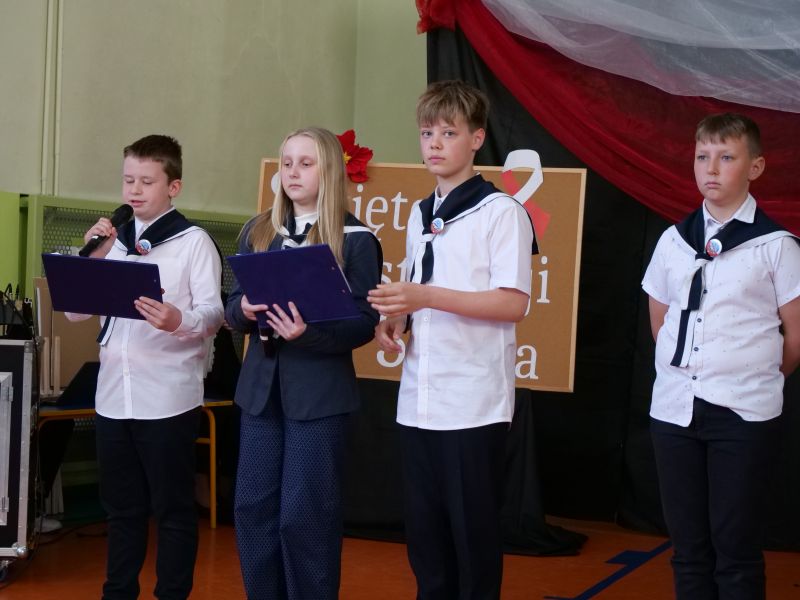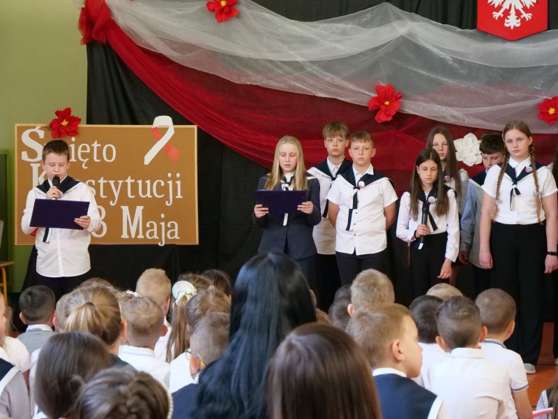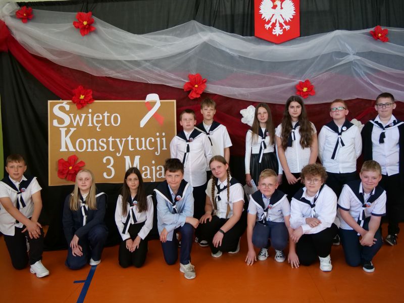 Dnia 30 kwietnia 2025 roku w naszej szkole odbyła się uroczysta akademia upamiętniająca 234. Rocznicę uchwalenia Konstytucji 3 Maja. Wydarzenie to było nie tylko lekcją historii, ale także okazją do refleksji nad wolnością i patriotyzmem. Uroczystość rozpoczęła się od odśpiewania hymnu narodowego, po czym uczniowie przedstawili montaż słowno-muzyczny, przypominający znaczenie i okoliczności uchwalenia Konstytucji z 1791 roku. Cała uroczystość przebiegła w podniosłej atmosferze, a występujący uczniowie wykazali się dużym zaangażowaniem i starannością.