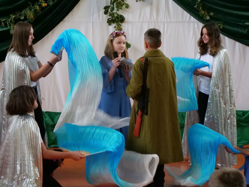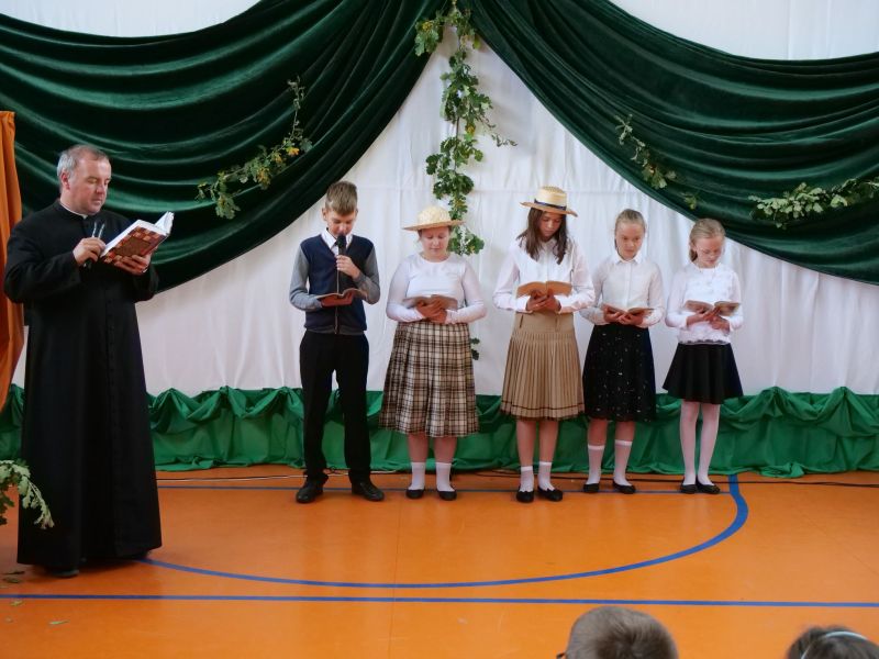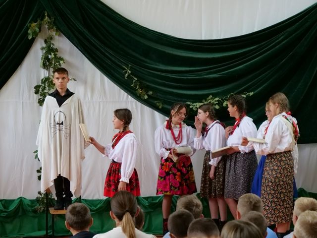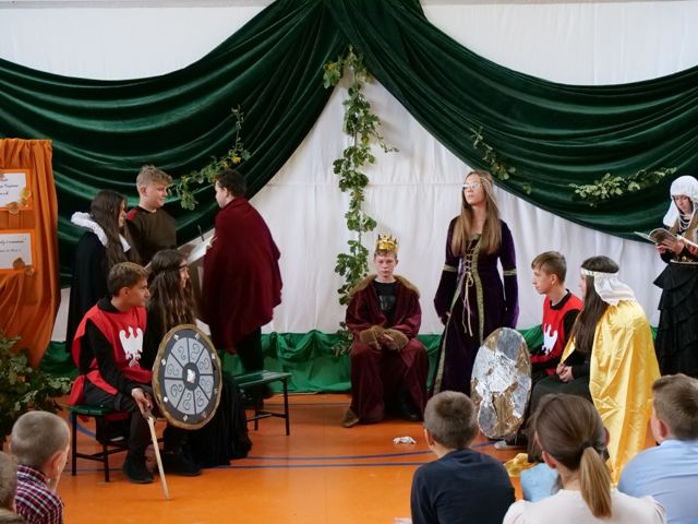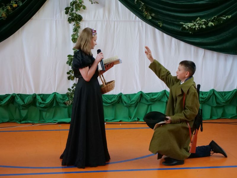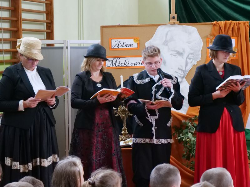 I tak oto klasa VI b zaprezentowała balladę „Romantyczność”; klasa VIII – „Rękawiczkę”; klasa VI a – „Powrót taty”, a klasa VII – „Świteziankę”. W czytaniu wzięli udział także: Pani Anna Madej i Pani Alicja Kulig z Rady Rodziców oraz Ksiądz Grzegorz Guzior.