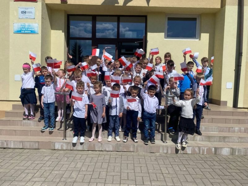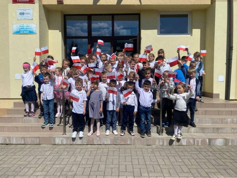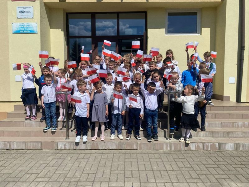 Początek maja to idealny czas, by wspierać i kształtować patriotyczne postawy, najlepiej już od najmłodszych lat. Z okazji Święta Flagi Rzeczypospolitej Polskiej oraz Święta Konstytucji 3 Maja oddziały przedszkolne z naszej szkoły wzięły udział w majowym marszu z polskimi flagami. Dzieci najpierw odśpiewały hymn i wzięły udział w uroczystej akademii po czym w eleganckich strojach dumnie dzierżąc polskie flagi przemaszerowały w okolicach szkoły przypominając tym samym o znaczeniu majowych świąt. Na zakończenie wydarzenia wszyscy zrobili sobie wspólne zdjęcie.
