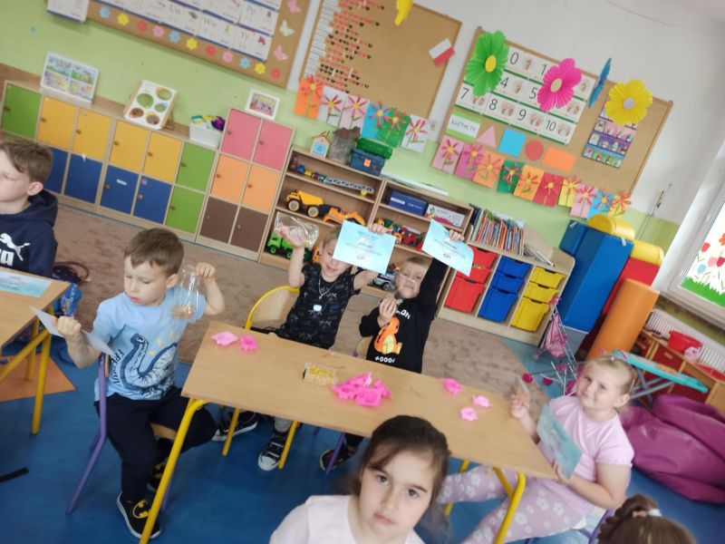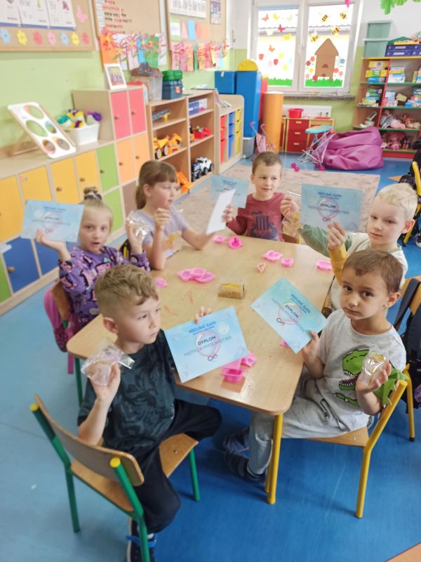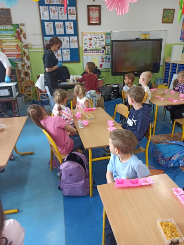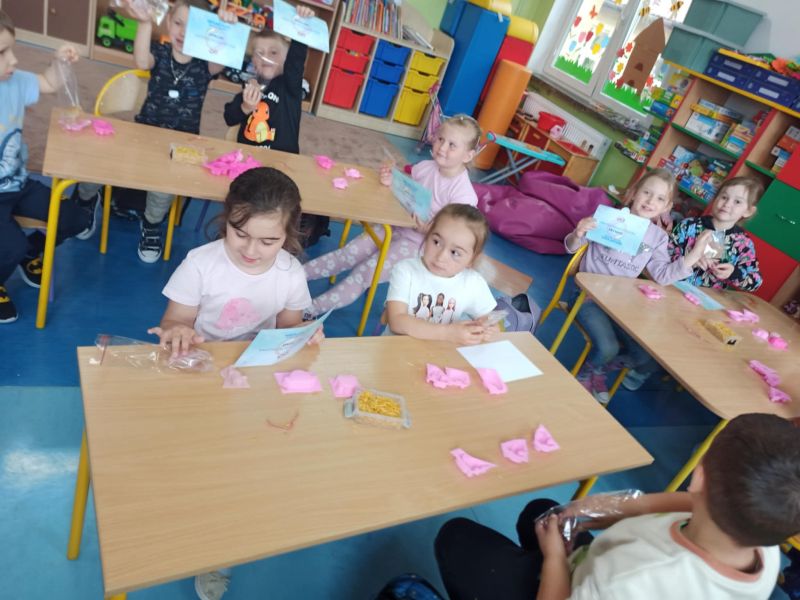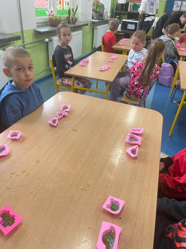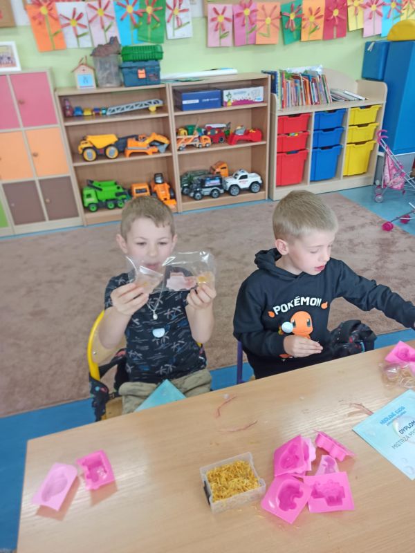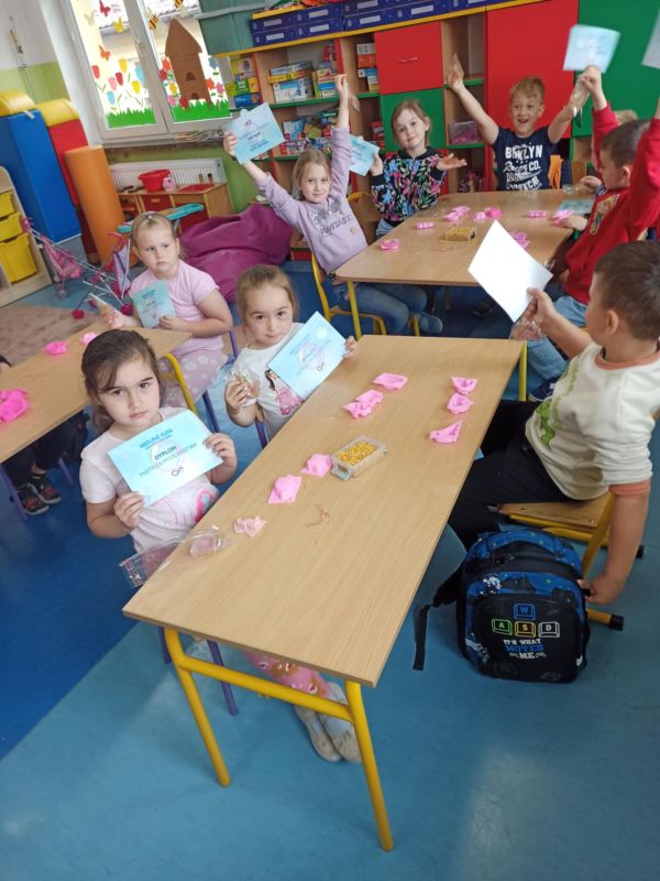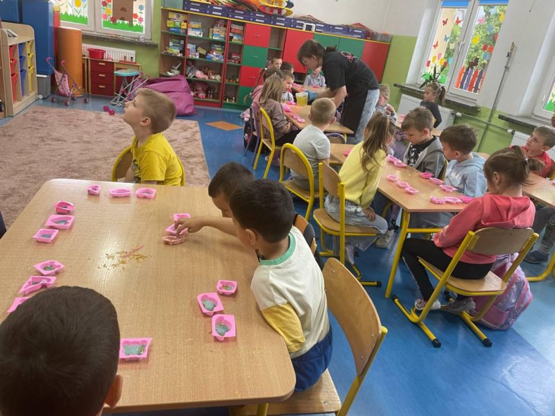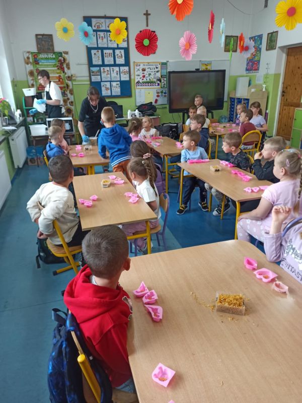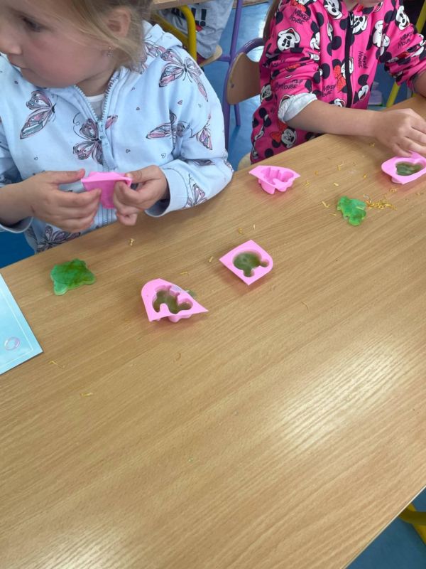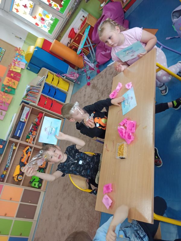 8 maja przedszkolaki z grupy 0 A, 0 B i 0 C przeniosły się do krainy cudownych zapachów i barw. Dzieci były uczestnikami kreatywnych warsztatów mydlarskich, prowadzonych przez Grupę Imago, podczas których tworzyły swoje własne oryginalne mydełka. Na wstępie dowiedzieliśmy się kilka ciekawostek o mydle, poznaliśmy historię jego powstawania, z czego powstaje mydło i jak długo powinno się myć ręce aby były czyste! Jednak głównym zadaniem, było stworzenie własnego, małego i niepowtarzalnego mydełka glicerynowego tj. ekologicznego. Dzieci miały możliwość, za pomocą zmysłów zdobywać nowe doświadczenia. Na zakończenie spotkania każdy uczestnik otrzymał DYPLOM MISTRZA MYDLARSTWA, a szkoła otrzymało Certyfikat Placówki wspierającej twórczość u dzieci.