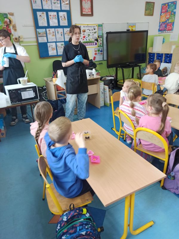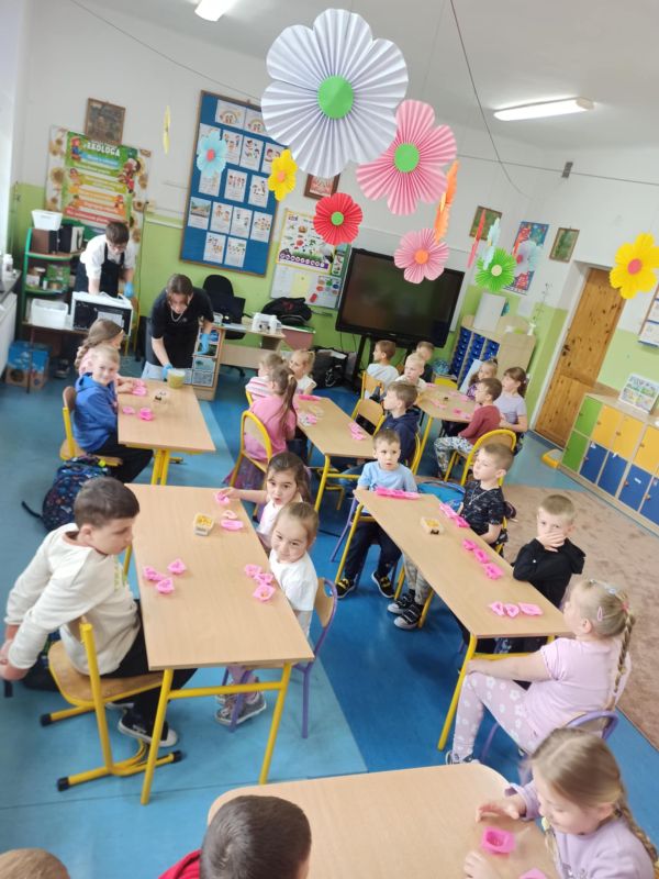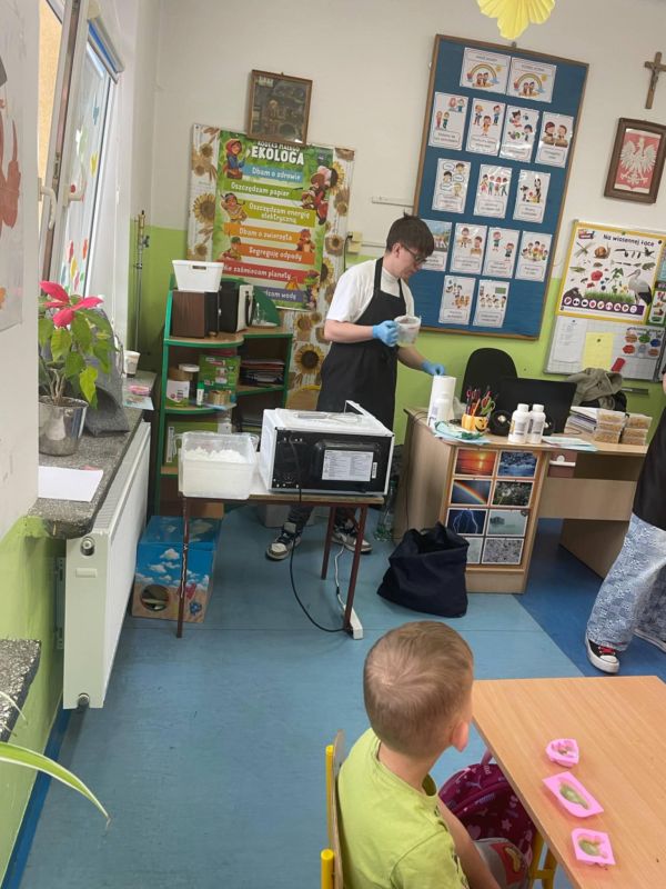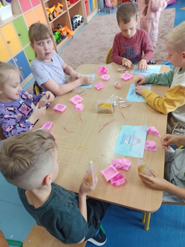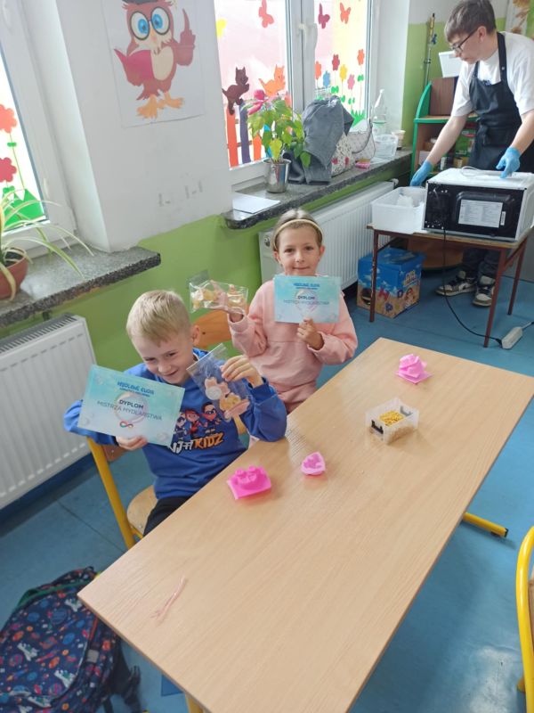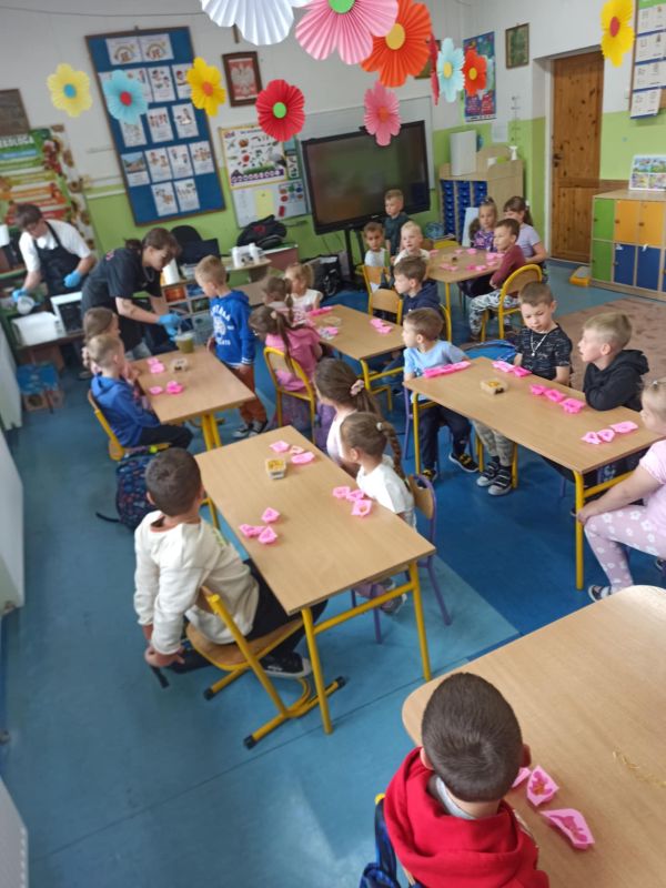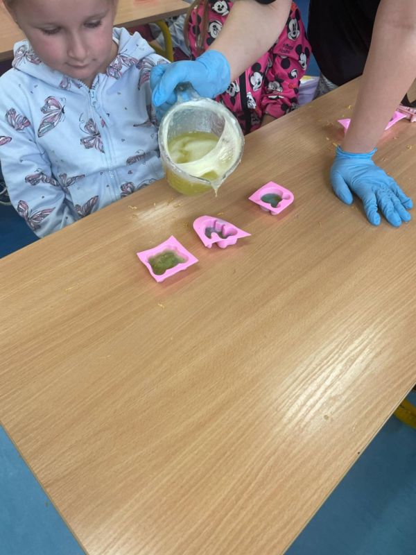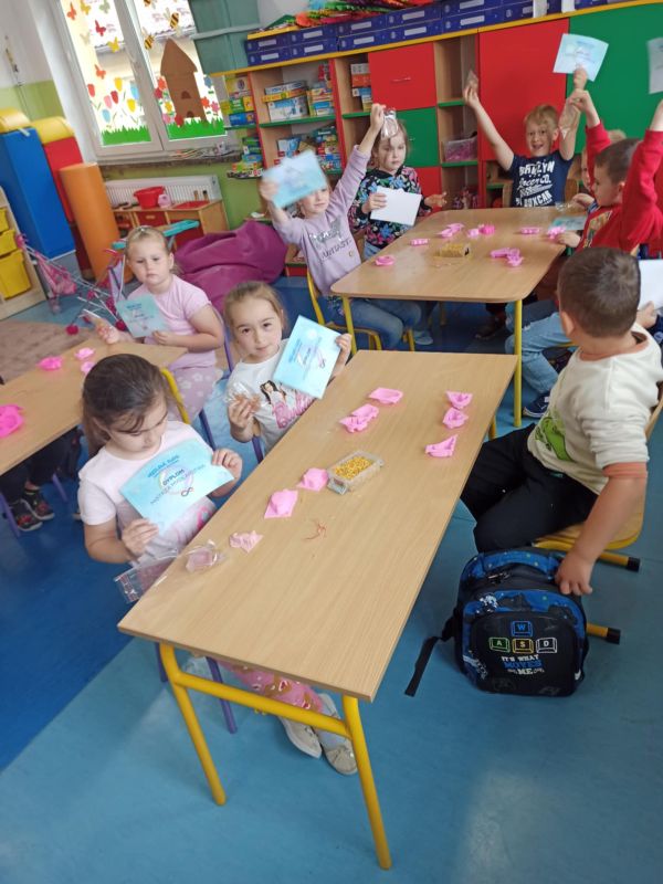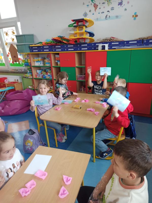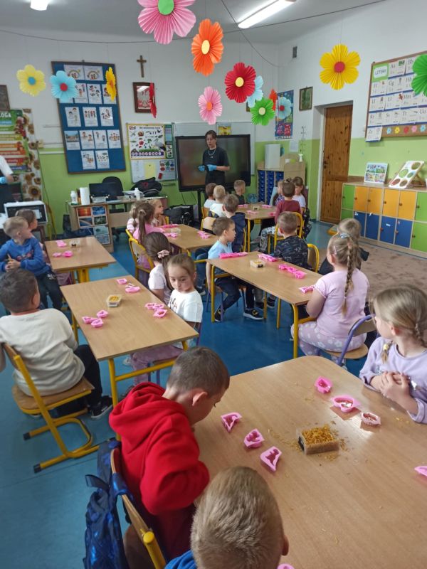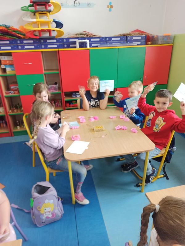 8 maja przedszkolaki z grupy 0 A, 0 B i 0 C przeniosły się do krainy cudownych zapachów i barw. Dzieci były uczestnikami kreatywnych warsztatów mydlarskich, prowadzonych przez Grupę Imago, podczas których tworzyły swoje własne oryginalne mydełka. Na wstępie dowiedzieliśmy się kilka ciekawostek o mydle, poznaliśmy historię jego powstawania, z czego powstaje mydło i jak długo powinno się myć ręce aby były czyste! Jednak głównym zadaniem, było stworzenie własnego, małego i niepowtarzalnego mydełka glicerynowego tj. ekologicznego. Dzieci miały możliwość, za pomocą zmysłów zdobywać nowe doświadczenia. Na zakończenie spotkania każdy uczestnik otrzymał DYPLOM MISTRZA MYDLARSTWA, a szkoła otrzymało Certyfikat Placówki wspierającej twórczość u dzieci.