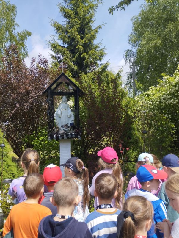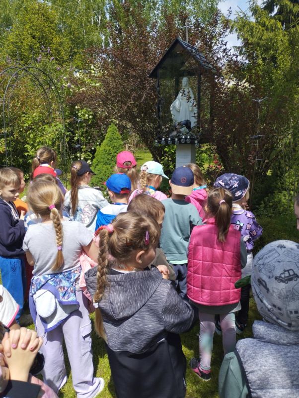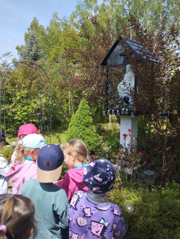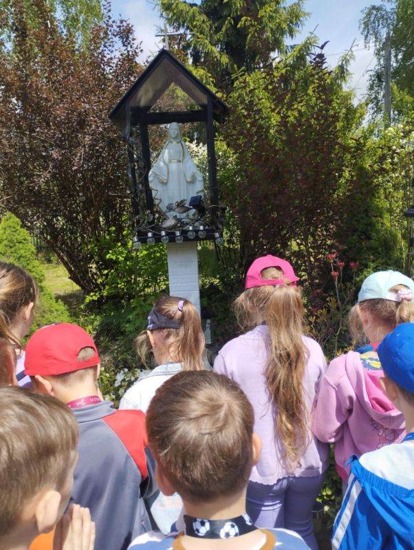 W maju br. dzieci z oddziałów przedszkolnych wzięły udział w plenerowej lekcji religii, którą zorganizowała Pani Wicedyrektor Beata Biernacka. Przedszkolaki wybrały się pod miejscową kapliczkę, gdzie wspólnie zaśpiewały Litanię Loretańską.