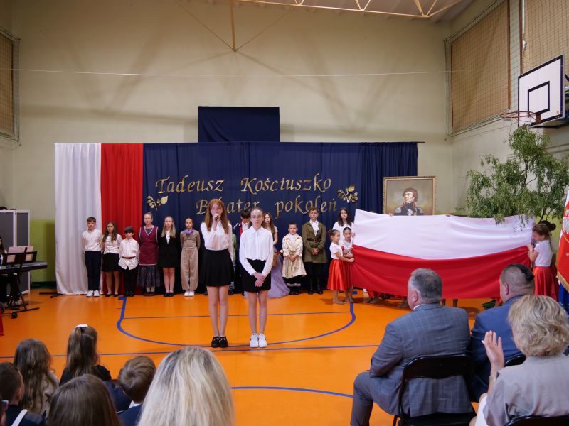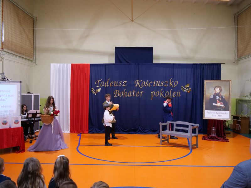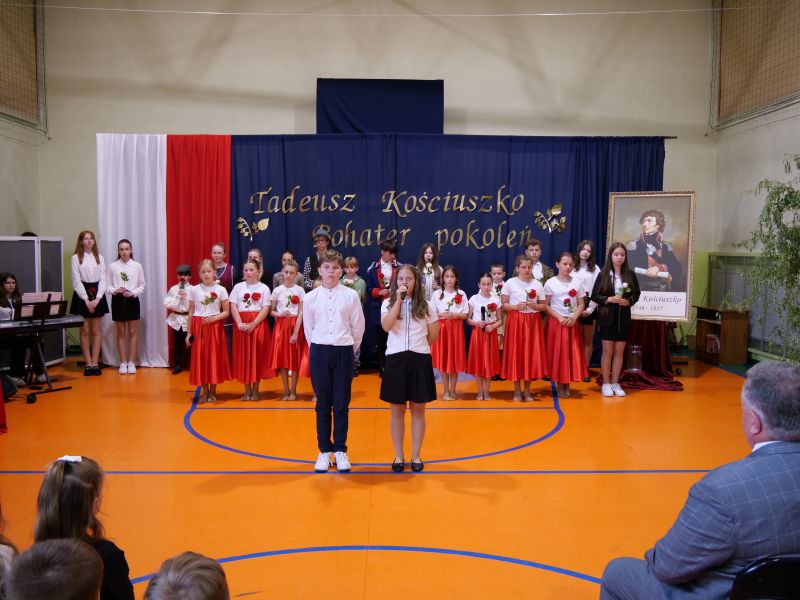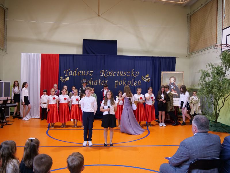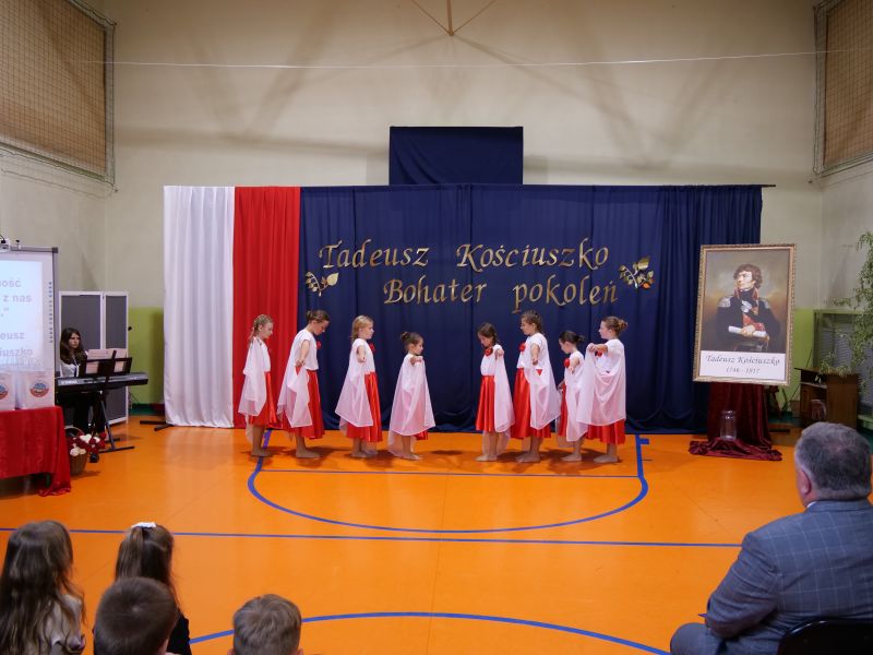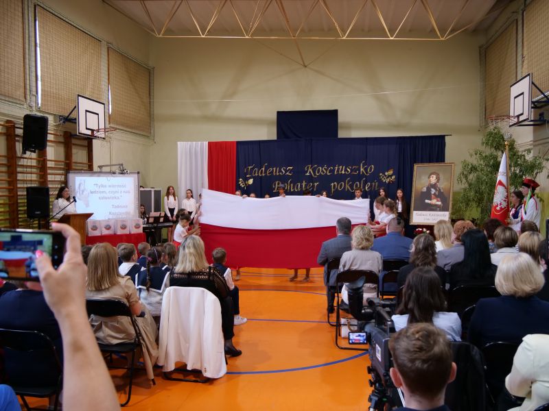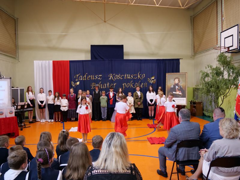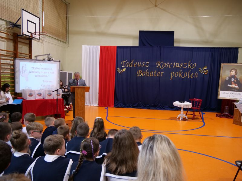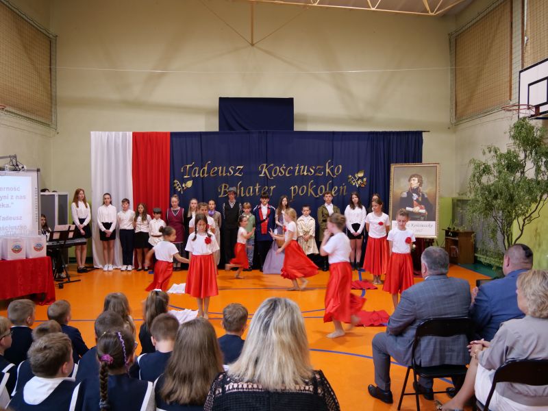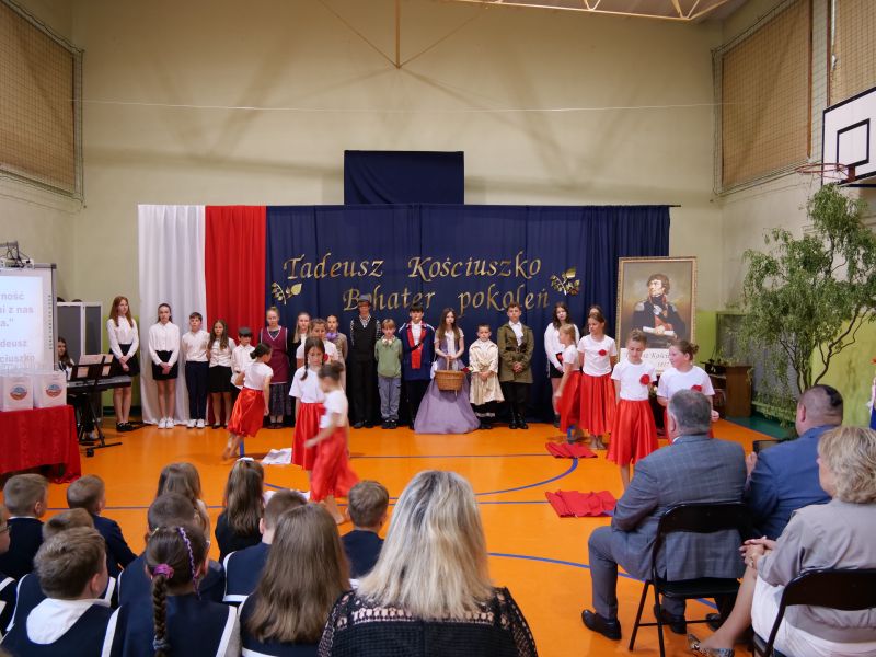 Wydarzenie rozpoczęło się uroczystą mszą świętą w intencji wszystkich nauczycieli, uczniów i pracowników szkoły, obecnych, jak i byłych. Następnie pochód przeszedł na salę gimnastyczną, gdzie odbyła się akademia szkolna rozpoczęta przemową Pana Dyrektora Wiesława Jedziniaka. Kolejnym punktem uroczystości było przedstawienie w wykonaniu uczniów klas 2-7, którzy włożyli wiele pracy i serca w jego organizację. Podczas akademii uczniowie zaprezentowali spektakl przybliżający życie i dokonania Kościuszki. Występy recytatorskie, inscenizacje oraz pieśni patriotyczne wypełniły salę, wzbudzając refleksję nad wartością wolności i niezależności, o które walczył nasz patron. Zaproszeni z tej okazji goście mieli okazję wysłuchać inspirujących słów o jego odwadze i nieustępliwości, a także podziwiać prace plastyczne poświęcone tej wielkiej postaci.