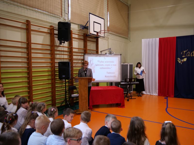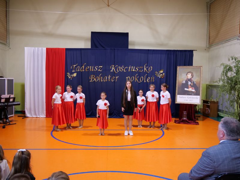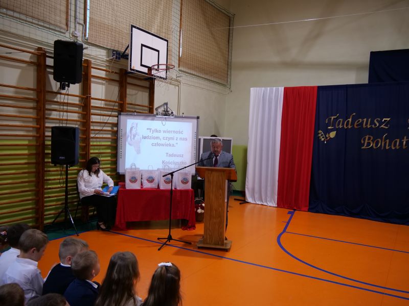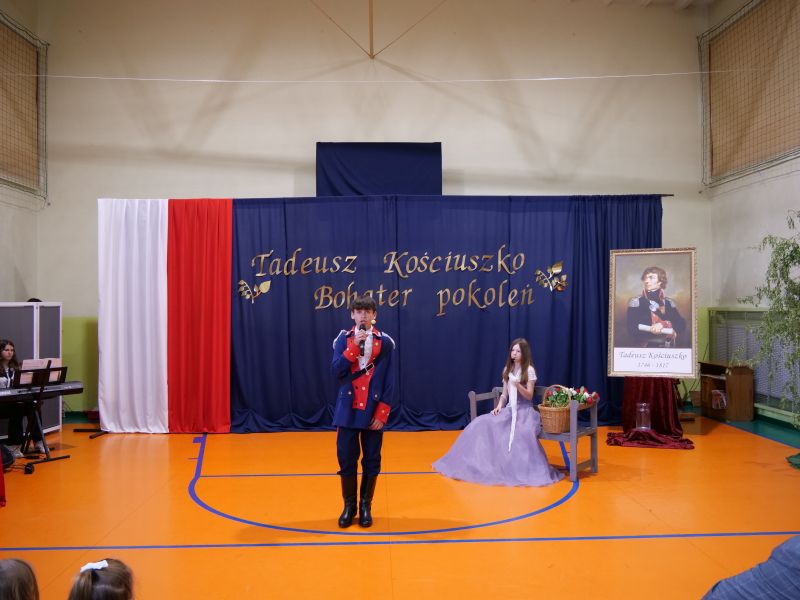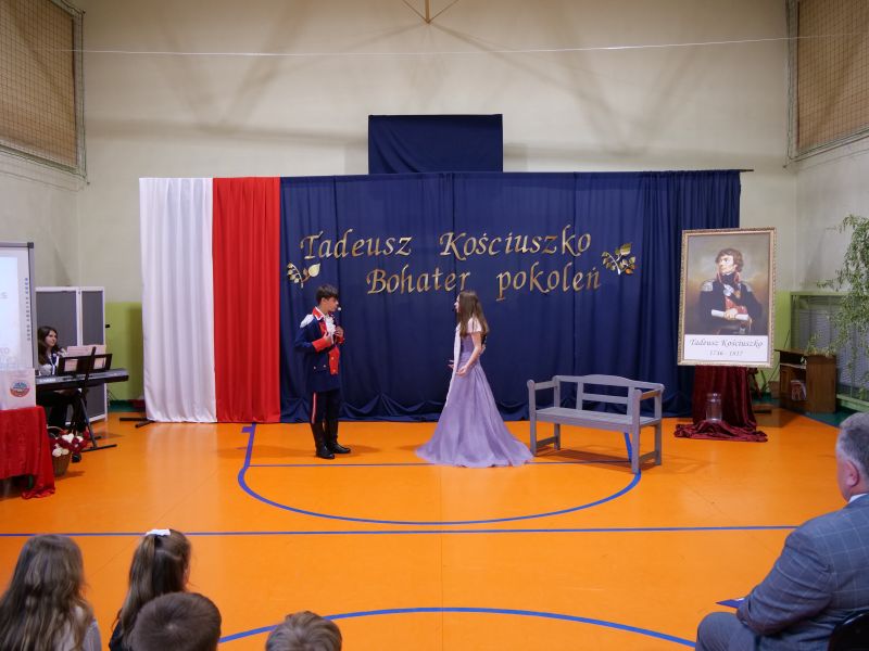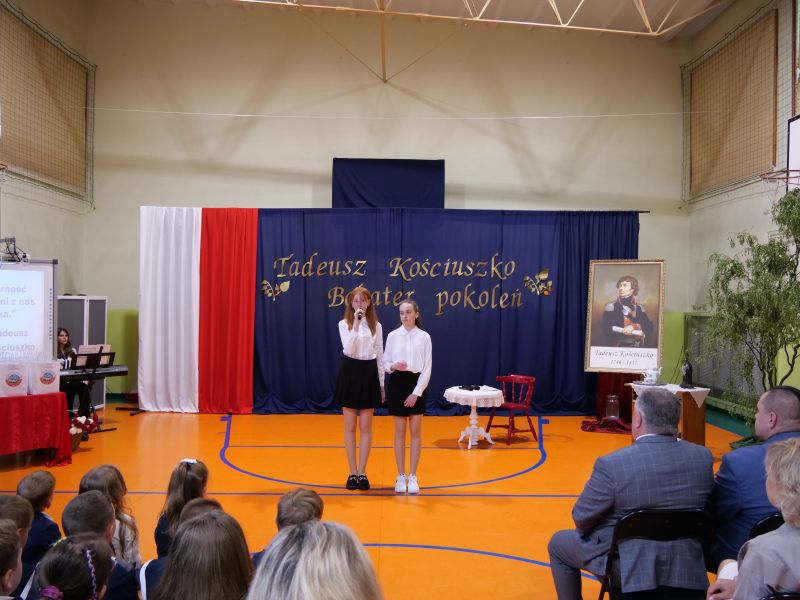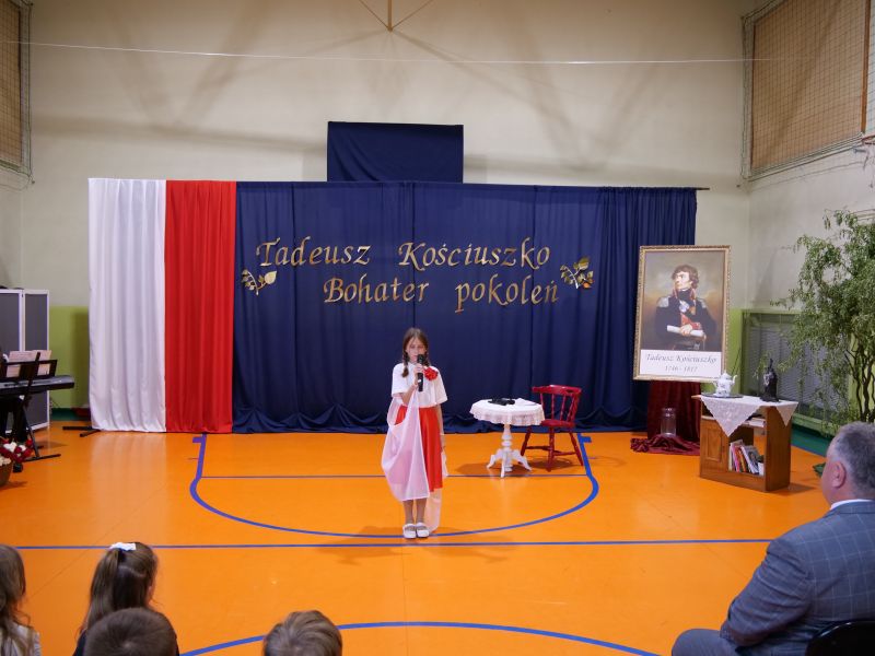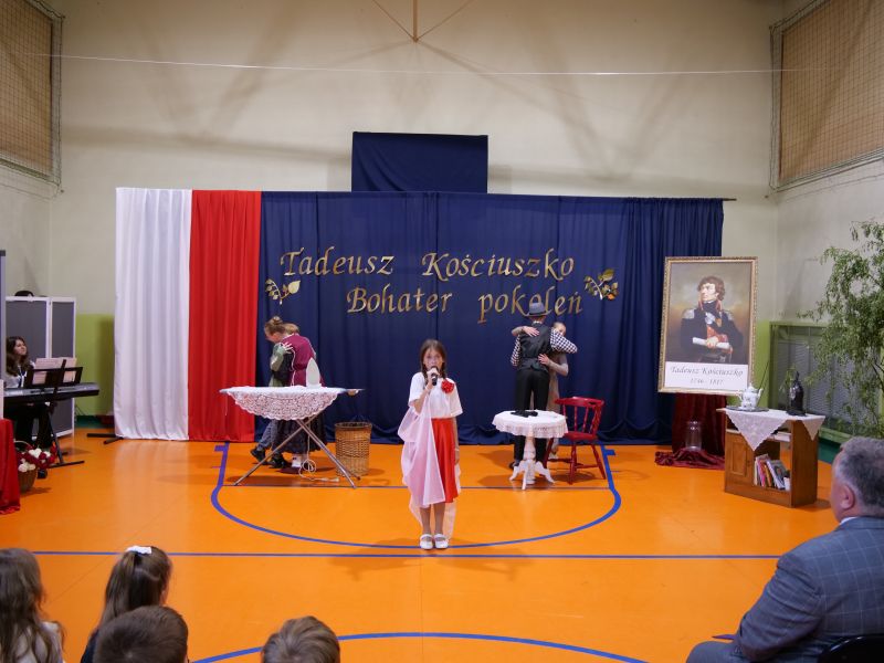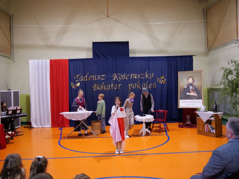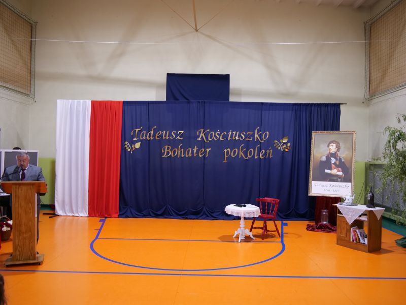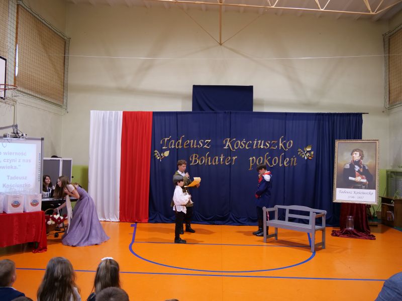Wydarzenie rozpoczęło się uroczystą mszą świętą w intencji wszystkich nauczycieli, uczniów i pracowników szkoły, obecnych, jak i byłych. Następnie pochód przeszedł na salę gimnastyczną, gdzie odbyła się akademia szkolna rozpoczęta przemową Pana Dyrektora Wiesława Jedziniaka. Kolejnym punktem uroczystości było przedstawienie w wykonaniu uczniów klas 2-7, którzy włożyli wiele pracy i serca w jego organizację. Podczas akademii uczniowie zaprezentowali spektakl przybliżający życie i dokonania Kościuszki. Występy recytatorskie, inscenizacje oraz pieśni patriotyczne wypełniły salę, wzbudzając refleksję nad wartością wolności i niezależności, o które walczył nasz patron. Zaproszeni z tej okazji goście mieli okazję wysłuchać inspirujących słów o jego odwadze i nieustępliwości, a także podziwiać prace plastyczne poświęcone tej wielkiej postaci.