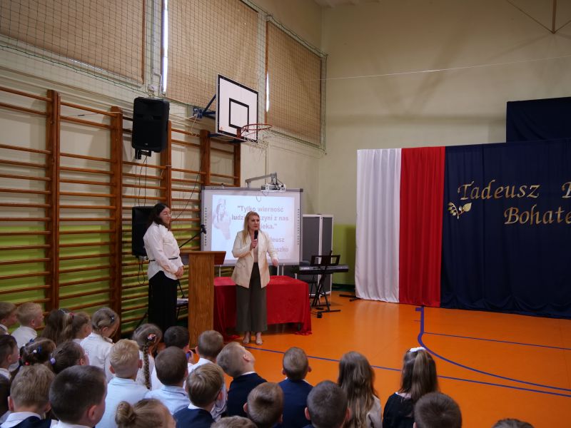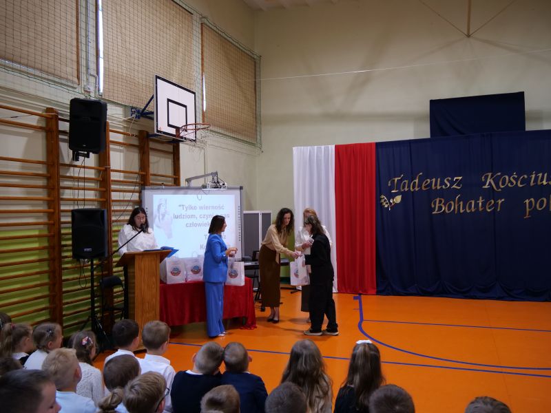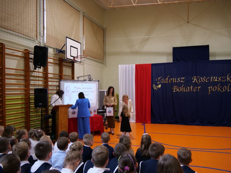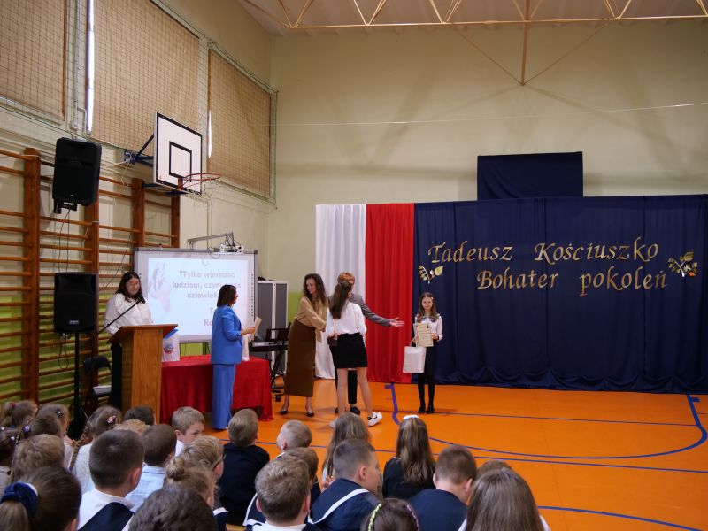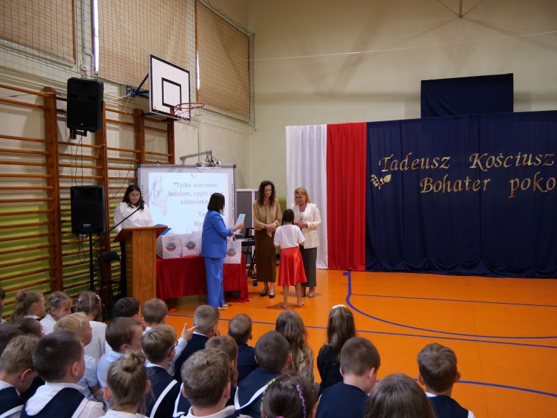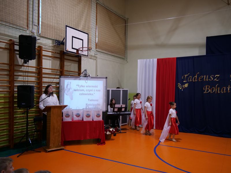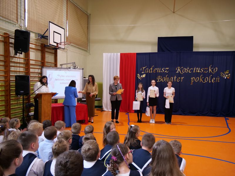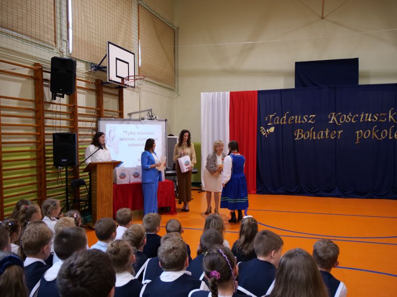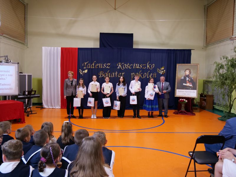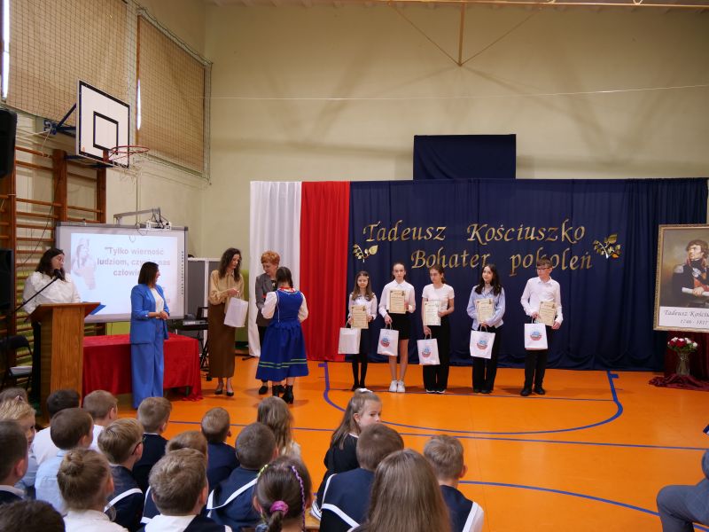 Wydarzenie rozpoczęło się uroczystą mszą świętą w intencji wszystkich nauczycieli, uczniów i pracowników szkoły, obecnych, jak i byłych. Następnie pochód przeszedł na salę gimnastyczną, gdzie odbyła się akademia szkolna rozpoczęta przemową Pana Dyrektora Wiesława Jedziniaka. Kolejnym punktem uroczystości było przedstawienie w wykonaniu uczniów klas 2-7, którzy włożyli wiele pracy i serca w jego organizację. Podczas akademii uczniowie zaprezentowali spektakl przybliżający życie i dokonania Kościuszki. Występy recytatorskie, inscenizacje oraz pieśni patriotyczne wypełniły salę, wzbudzając refleksję nad wartością wolności i niezależności, o które walczył nasz patron. Zaproszeni z tej okazji goście mieli okazję wysłuchać inspirujących słów o jego odwadze i nieustępliwości, a także podziwiać prace plastyczne poświęcone tej wielkiej postaci.