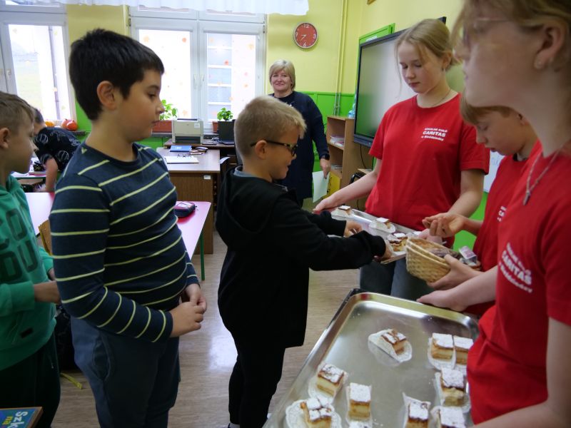 W tym dniu Szkolne Koło Caritas rozprowadzało także "papieskie kremówki" w formie cegiełek na działalność wolontariacką. Serdeczne podziękowania należą się Panu Marcinowi Janikowi oraz pracownikom kuchni za bezinteresowną pomoc w przygotowaniu przepysznych kremówek, które zadowoliły podniebienia wszystkich naszych szkolnych łasuchów.