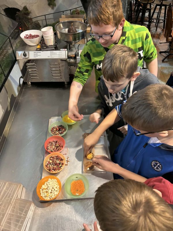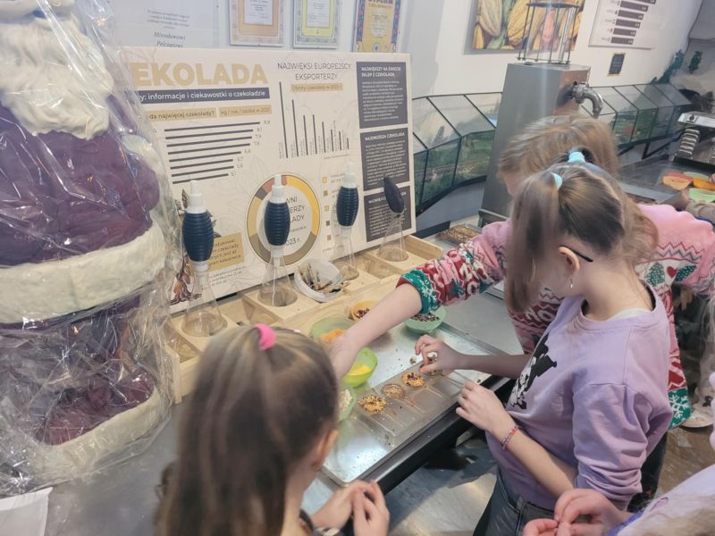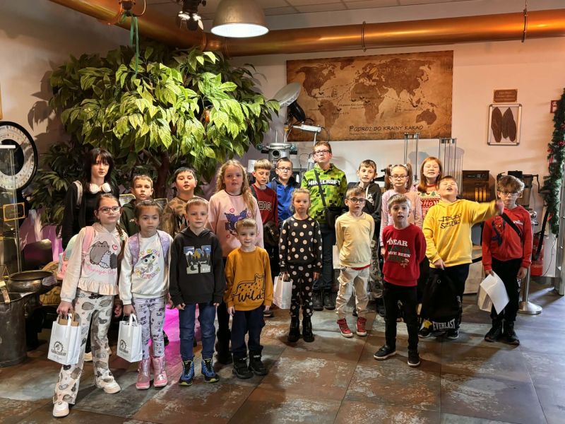 5 grudnia 2025 roku odbył się mikołajkowy wyjazd do Pijalni Czekolady w Korczynie, w którym uczestniczyło 19 uczniów realizujących w naszej szkole kształcenie specjalne. Uczniowie obejrzeli film edukacyjny o historii czekolady, poznali tajniki wyrobu tego magicznego przysmaku oraz degustowali jego różne gatunki. W ramach zajęć warsztatowych uczestnicy wycieczki mieli okazję stworzyć tabliczkę czekolady według własnego pomysłu oraz dekorowali świąteczne pierniczki. Warsztaty cukiernicze dla wszystkich okazały się wyjątkowo pasjonującym i kreatywnym zajęciem. Ostatnim punktem programu było spotkanie ze Świętym Mikołajem w iście bajkowej scenerii. Święty Mikołaj był bardzo hojny i nikt nie wyszedł ze spotkania z nim bez prezentu. Nasi uczniowie uznali natomiast, że integracyjny wyjazd do Pijalni Czekolady w Korczynie był najsłodszym dniem tego roku szkolnego :)