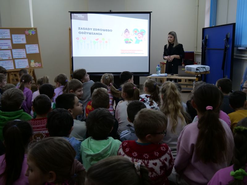 9 grudnia br. uczniowie wzięli udział w spotkaniu z dietetyczką Panią Martyną Pruchnik. Spotkanie to odbywa się corocznie i ma szeroki wymiar edukacyjno - profilaktyczny, wpisując się w działania wychowawcze szkoły. Temat zdrowego odżywiania się jest szczególnie ważny dla dzieci i młodzieży w związku z szerokim dostępem do produktów przetworzonych, słodyczy i fast foodów. Problem otyłości wśród dzieci w Polsce narasta i jest przyczyną wielu schorzeń. Naukowcy alarmują także, że nadmiar cukru w diecie młodych ludzi prowadzi do wzrostu nadpobudliwości i deficytów w obrębie koncentracji uwagi i pamięci.