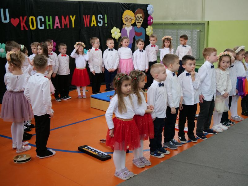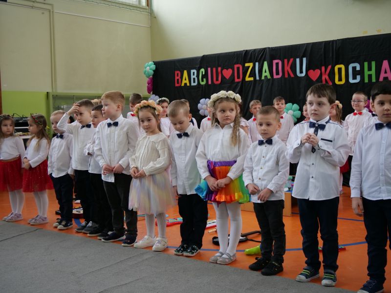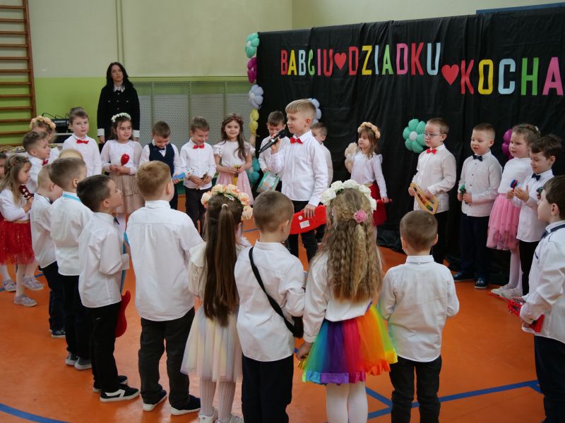Dnia 22 stycznia 2026 roku dzieci z oddziałów przedszkolnych przygotowała uroczystość z okazji Dnia Babci i Dziadka. Było to wyjątkowe i pełne wzruszeń spotkanie, na które z niecierpliwością czekały zarówno przedszkolaki, jak i zaproszeni goście. Dzieci deklamowały wiersze, śpiewały piosenki oraz wykonały brawurowy taniec do utworu „Muzykanci Konszabelanci”, grając przy tym na instrumentach muzycznych. Młodzi artyści zostali nagrodzeni gromkimi brawami i uśmiechami dumnych babć i dziadków. Po części artystycznej odbył się poczęstunek, który był okazją do wspólnych rozmów i spędzenia miłego czasu w rodzinnej atmosferze. Uroczystość została przygotowana przez Panią Dominikę Jarecka i Panią Lucynę Rusztowicz przy wsparciu Pani Magdaleny Nizioł i Pani Anny Koś.