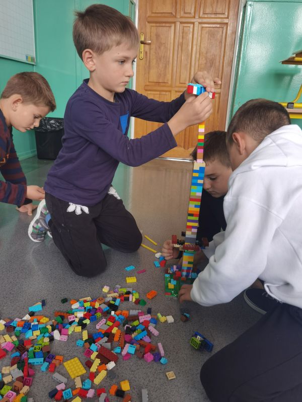 Budowanie z klocków LEGO to nie tylko zabawa, ale również edukacja poprzez ich układanie. Klocki rozwijają u dzieci motorykę małą, kreatywność, koncentrację, zmysły, a także jest to dobry sposób na relaks i spędzanie wolnego czasu. Uczniowie klas młodszych wzięli udział w dodatkowych zajęciach edukacyjnych z klockami LEGO, które odbyły się na przełomie września i października. Lekcje zostały przeprowadzone z wykorzystaniem sprzętu zakupionego w ramach programu „LABORATORIA PRZYSZŁOŚCI”. Każde zajęcia poprzedzone były krótką pogadanką edukacyjną na dany temat, następnie dzieci przechodziły do konstruowania budowli z klocków. Ich wyobraźnia i kreatywność były wprost imponujące, a pasją do klocków LEGO "zaraziły" się chyba już na dobre!