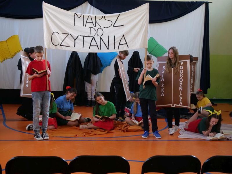 16 lutego 2023 roku odbyło się spotkanie promujące czytelnictwo oraz twórczość Marii Konopnickiej. Konferansjerzy: Kornelia Palar i Maksymilian Gruchacz przedstawili raport Biblioteki Narodowej, z którego jasno wynika, że mniej niż połowa Polaków przeczytała w ubiegłym roku przynajmniej jedną książkę. Aby zmienić tę sytuację, nasza szkoła postanowiła „przypuścić ofensywę” czytelniczą. Na początku uczniowie klas szóstych zaprezentowali happening pod tytułem: „Marsz do czytania”, którego przesłanie zamykały się w słowach: „Książki są naszymi najlepszymi przyjaciółmi”, „Są lekiem na całe zło i nadzieją na przyszły rok” i „kumplem” do zabawy.