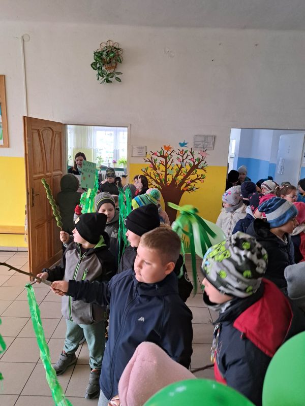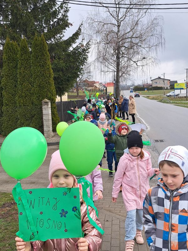 Zgodnie z tradycją 21 marca 2023 roku uczniowie klas młodszych wraz z wychowawcami przywitali wiosnę, biorąc udział w "zielonym marszu" po najbliższej okolicy. Dzieci w radosnych nastrojach szukały pierwszych oznak wiosny, na którą wszyscy tak bardzo czekamy! W tym dniu uczniowie ubrali się na kolor zielony, aby w ten sposób podkreślić obchody pierwszego dnia wiosny.
