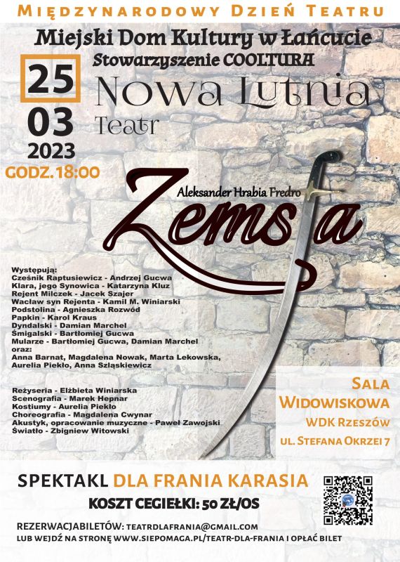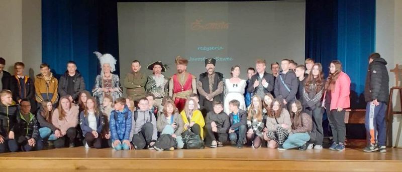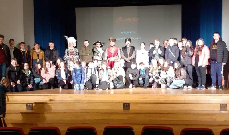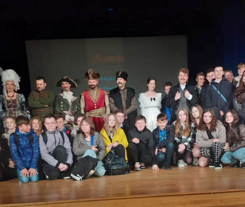 25 kwietnia uczniowie klasy VI, VII i VIII mieli okazję obejrzeć spektakl teatralny "Zemsta" Aleksandra Fredry w wykonaniu TEATRU NOWA LUTNIA z Łańcuta. Spektakl odbył się na scenie Wojewódzkiego Domu Kultury i wpisywał się w obchody Międzynarodowego Dnia Teatru.