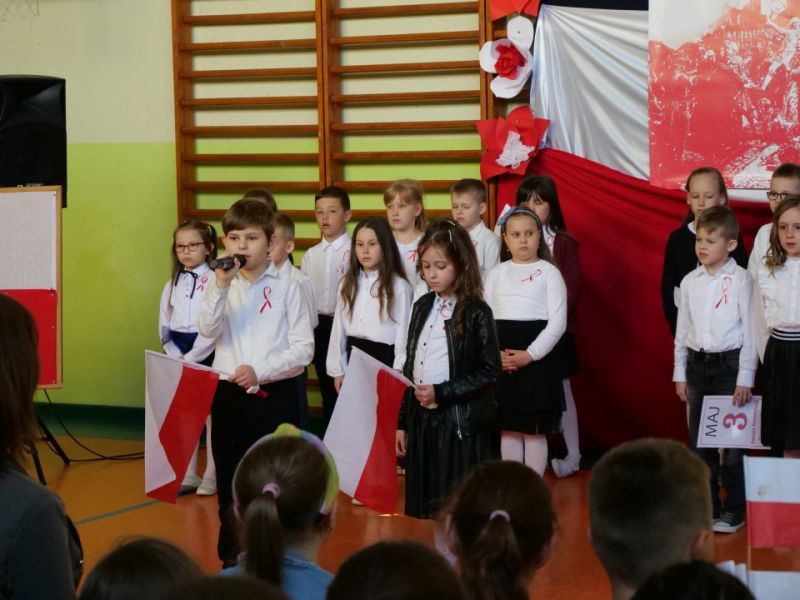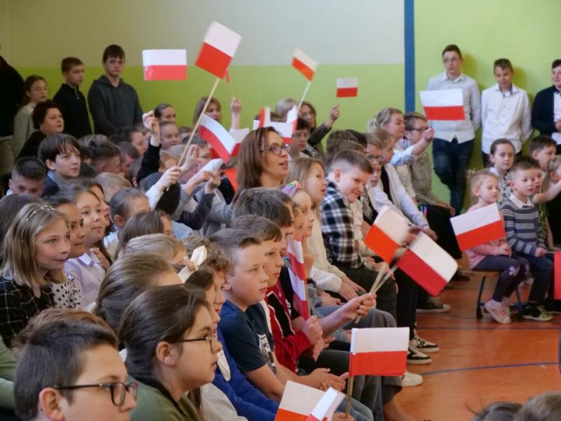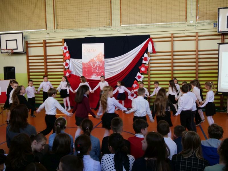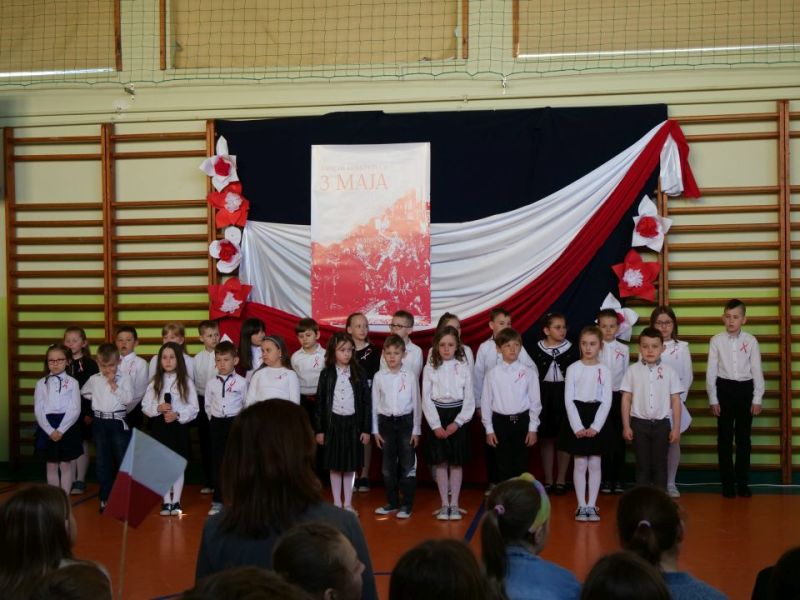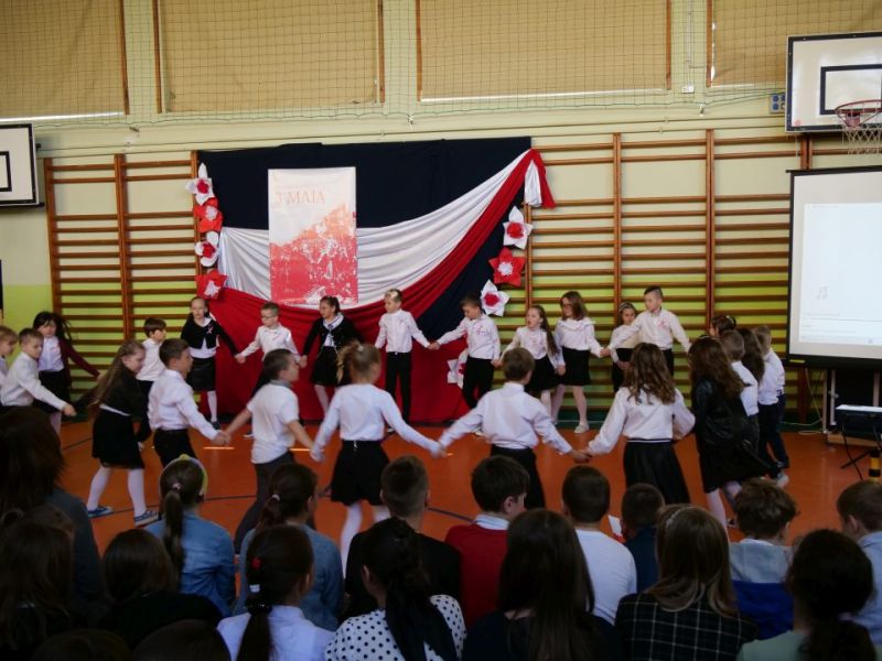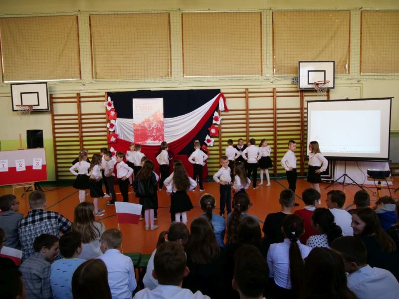 28 kwietnia 2023 roku odbyła się uroczysta akademia z okazji Rocznicy Uchwalenia Konstytucji 3 Maja. Uczniowie klasy 2 a przypomnieli najważniejsze fakty historyczne związane z wprowadzeniem w Polsce pierwszej Ustawy Rządowej, odśpiewali pieśni patriotyczne oraz przepięknie zatańczyli "Krakowiaka". Na sali nie zabrakło biało - czerwonych symboli narodowych, wyrażających naszą dumę narodową oraz postawy patriotyczne. Uroczystość przygotowali: pani Renata Stelmach, Pani Elżbieta Tutaj, pani Izabela Korecka oraz pan Ryszard Burowski. Zapraszamy do obejrzenia fotorelacji z tej uroczystości!