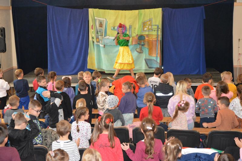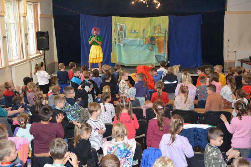 19.10.2023r. na sali bankietowej w Kołaczycach odbył się spektakl teatru z Krakowa KRAK-ART pt. „Kaczka cudaczka”. W widowisku uczestniczyły dzieci w wieku szkolnym i przedszkolnym.