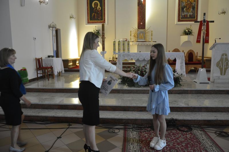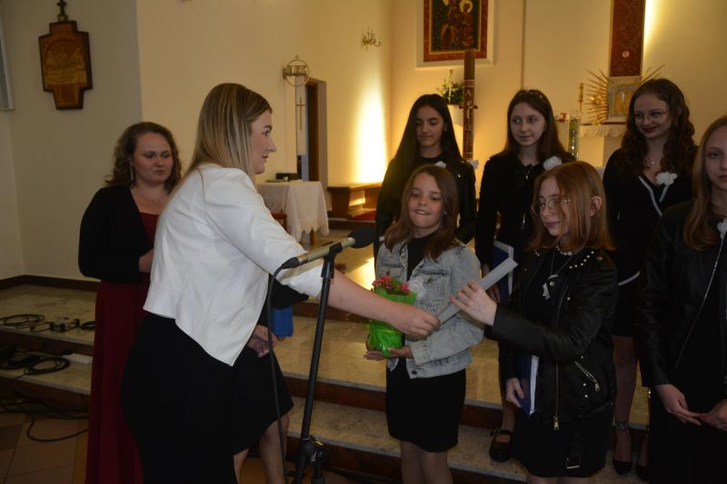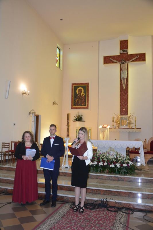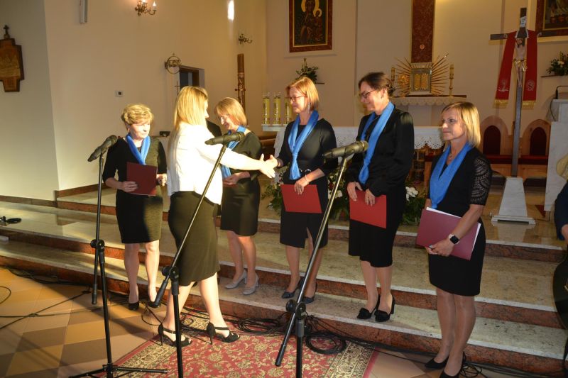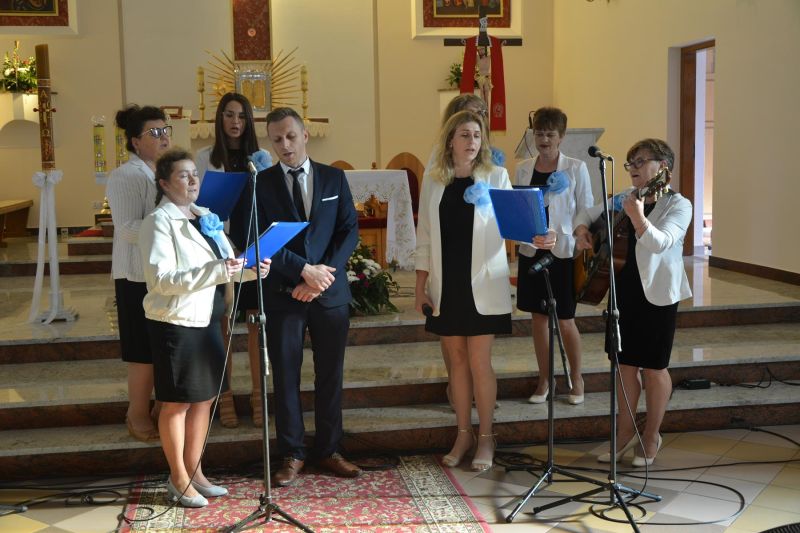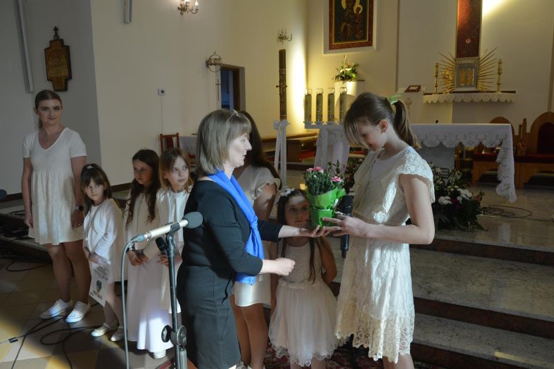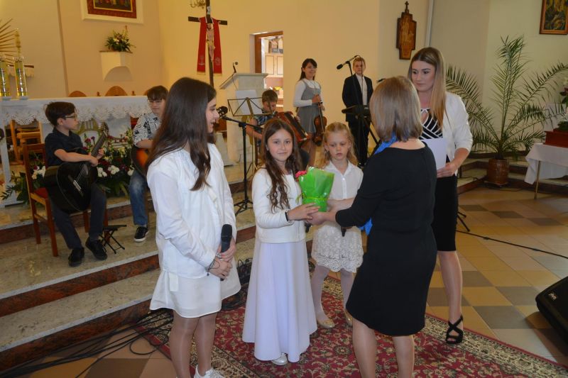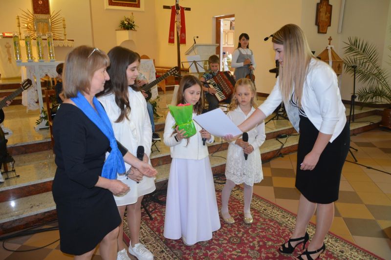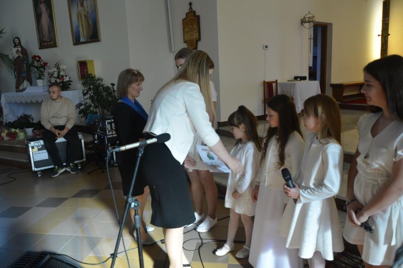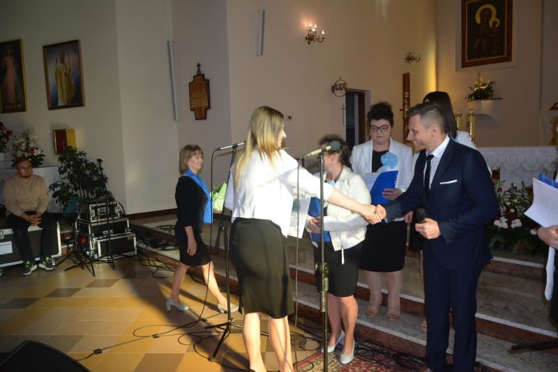 Wykonawcy otrzymali kwiaty oraz pamiątkowe dyplomy. W imieniu organizatorów głos zabrała Pani Burmistrz Kołaczyc Magdalena Stasiowska, Dyrektor Gminnego Ośrodka Kultury w Kołaczycach Marzena Jasik, a także gospodarz miejsca – ks. kan. Roman Czenczek, którzy przypomnieli ideę przeglądu oraz wyraził nadzieję na to, że niniejsze spotkanie przyniesie dobre owoce w życiu wykonawców oraz słuchaczy. Na zakończenie ks. Proboszcz udzielił wszystkim błogosławieństwa, po którym zabrzmiała pieśń Po górach dolinach w wykonaniu wszystkich zgromadzonych. Po zakończeniu oficjalnej części uczestnicy przeglądu udali się do Domu Ludowego na poczęstunek. Była to dobra okazja ku temu, by w życzliwych rozmowach podzielić się radością, którą daje muzyka oraz wymienić doświadczenia.