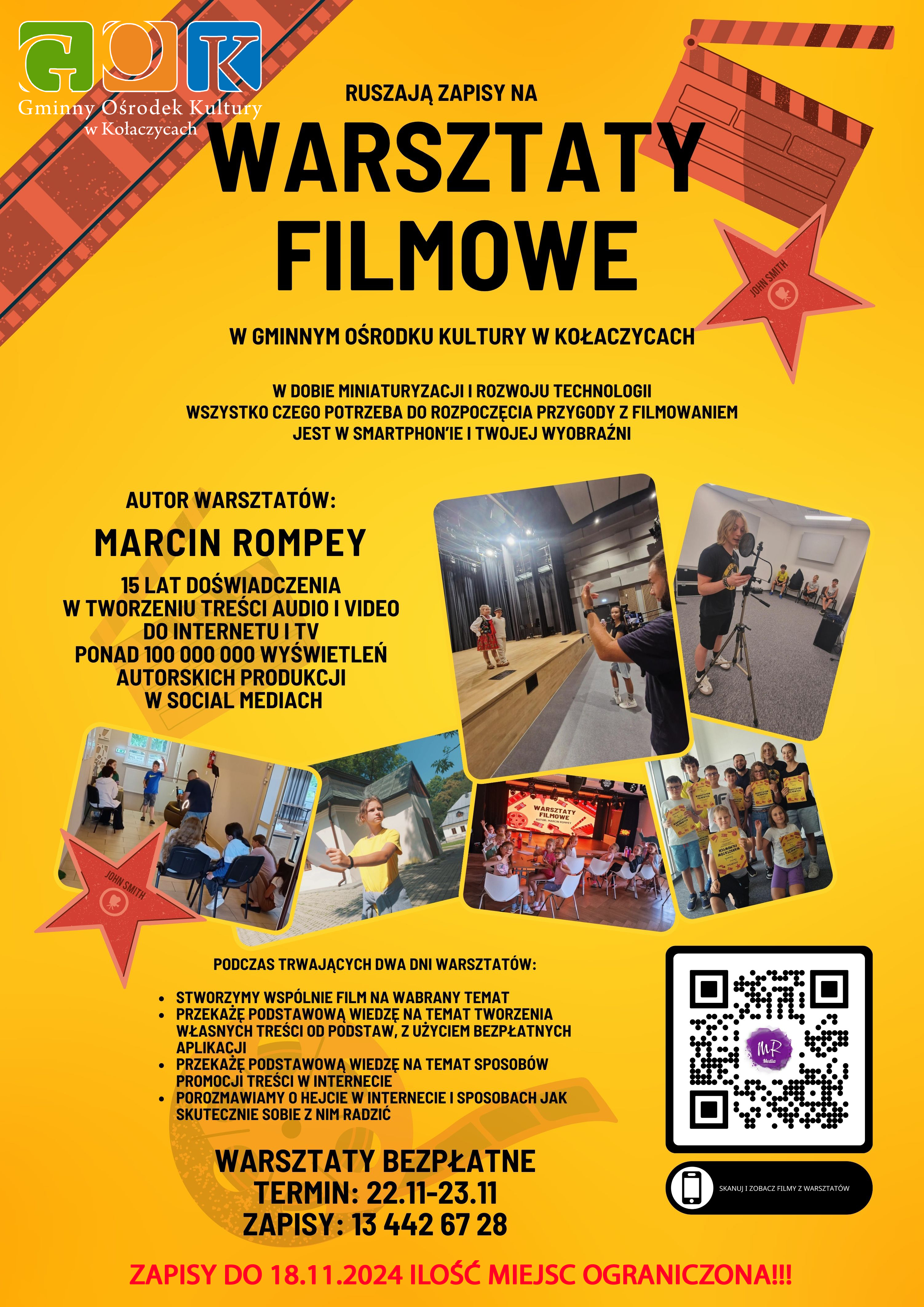 Zapraszamy na WARSZTATY FILMOWE!!!