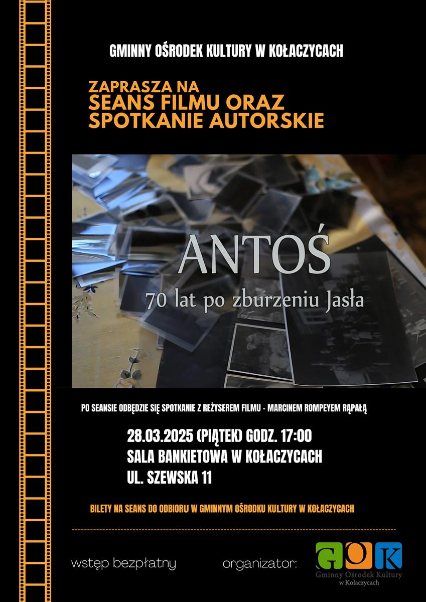 Serdecznie zapraszamy na seans filmu „Antoś – 70 lat po zburzeniu Jasła” oraz spotkanie autorskie z reżyserem Marcinem Rompeyem Rąpałą, które odbędzie się w dniu 28.03.2025 r. o godz. 17.00 na Sali bankietowej w Kołaczycach.