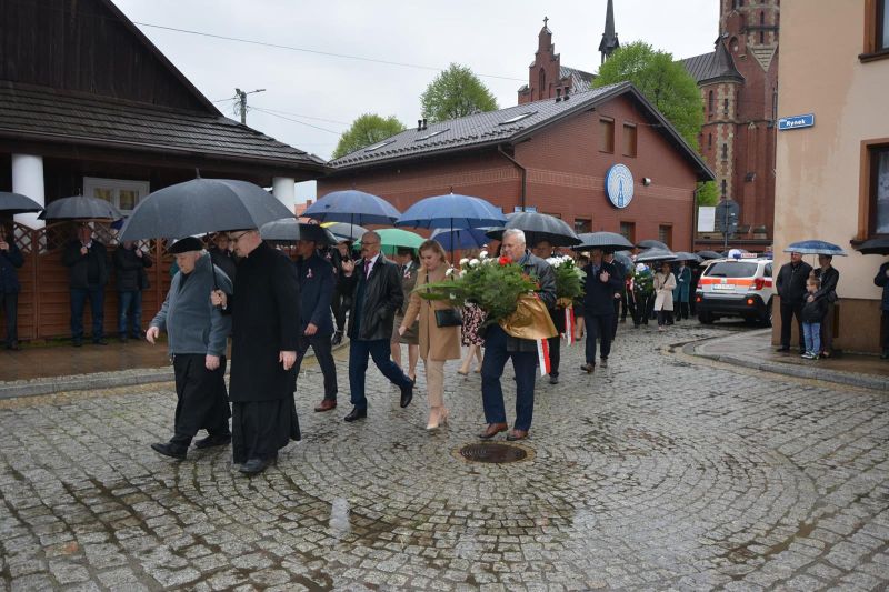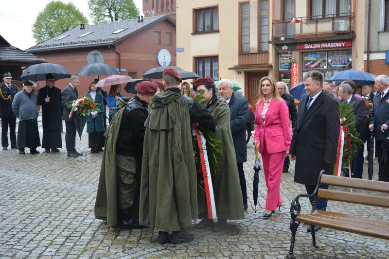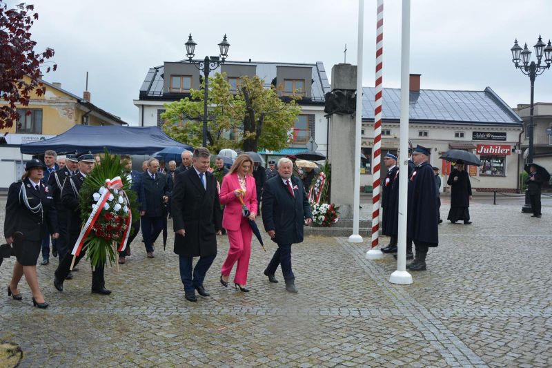Po mszy przedstawiciele samorządu gminy wraz z burmistrzem Kołaczyc Panem Stanisławem Żygłowiczem złożyli kwiaty pod pomnikami na płycie rynku. Dołączyli do nich zaproszeni goście z panią Joanna Frydrych Posłem do Sejmu RP na czele, Przewodniczący Rady Miejskiej w Kołaczycach Pan Edward Zbylut wraz z radnymi, w imieniu Senator Rzeczpospolitej Polskiej Pani Alicji Zając, kwiaty składała Pani Marzanna Henzel, w imieniu posła na Sejm Rzeczypospolitej Polskiej Pana Mieczysława Kasprzaka kwiaty składał asystent społeczny Ernest Dąbrowski, w imieniu posła do Parlamentu Europejskiego Bogdana Rzońcy kwiaty składał Jan Kutyna – Przewodniczący Gminnego Komitetu Prawa i Sprawiedliwości, w imieniu Radnego Sejmiku województwa podkarpackiego i Wiceprezesa Zarządu Wojewódzkiego Polskiego Stronnictwa Ludowego Pana Dariusza Sobieraja kwiaty składali Pani Ewa Kucharczyk, Pan Jan Fuczek oraz Pan Antoni Madej, przedstawiciele Gminnego Komitetu Prawa i Sprawiedliwości, przedstawiciele służb mundurowych: z-ca komendanta powiatowego PSP bryg. Jan Szeląg, z-ca Szefa Wojskowego Centrum Rekrutacji w Jaśle mjr. Wiesław Wojdyła, Komendant Posterunku Policji w Kołaczycach asp.szt. Mieczysław Wójcik, w imieniu Zarządu Oddziału Gminnego Związku Ochotniczych Straży Pożarnych Rzeczpospolitej Polskiej kwiaty składała Prezes Zarządu Małgorzata Salacha, Przewodniczący Zarządu Miasta Kołaczyc Pan Franciszek Bernal, w imieniu Stowarzyszenia Miłośników Kołaczyc kwiaty składają członkowie zarządu, przedstawiciel Nadleśnictwa Kołaczyce Pani Agnieszka Gołąb, przedstawiciele Zarządu Miejskiego Klubu Sportowego OSTOJA Kołaczyce