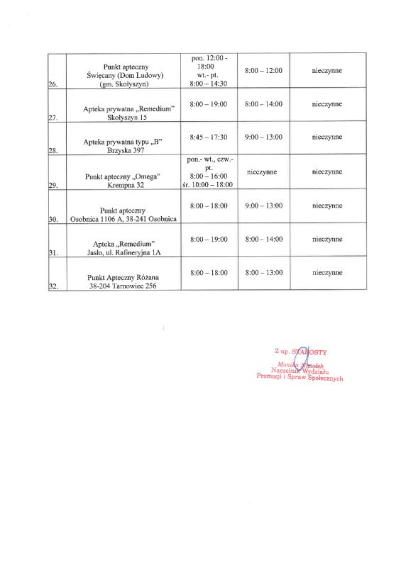APTEKI - ROZKŁAD GODZIN NA 2026 ROK