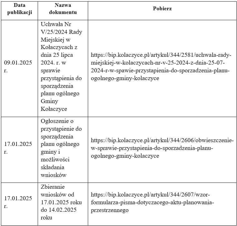 Etap I - Przystąpienie do sporządzenia planu ogólnego, zbieranie wniosków, prace projektowe