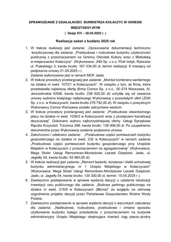 UM XVI SESJA RADY MIEJSKIEJ W KOŁACZYCACH
