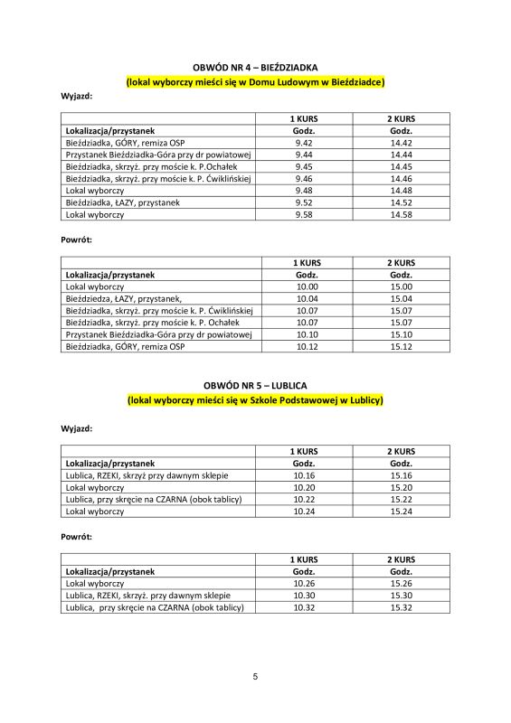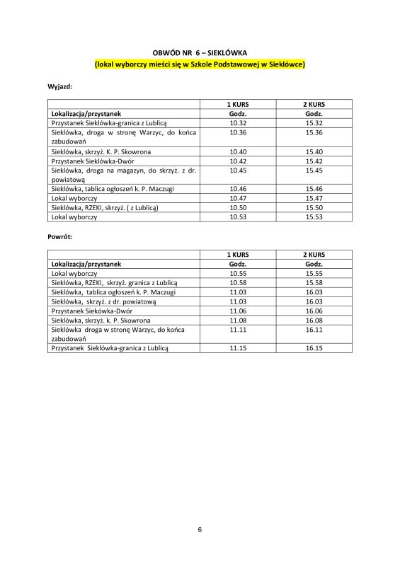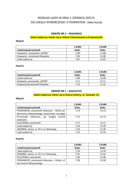 UM BEZPŁATNY TRANSPORT DO LOKALI WYBORCZYCH - II TURA WYBORÓW