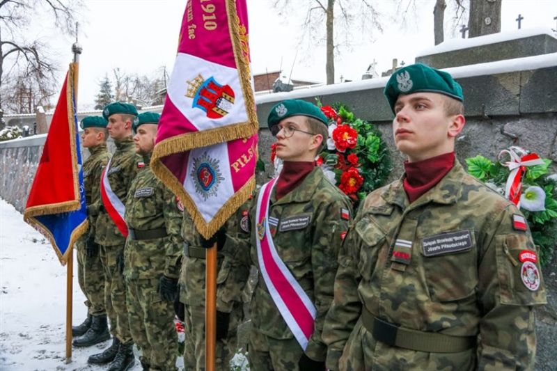 Zdjęcie przedstawia obchody 155 Rocznicy urodzin Józefa Piłsudskiego na Litwie