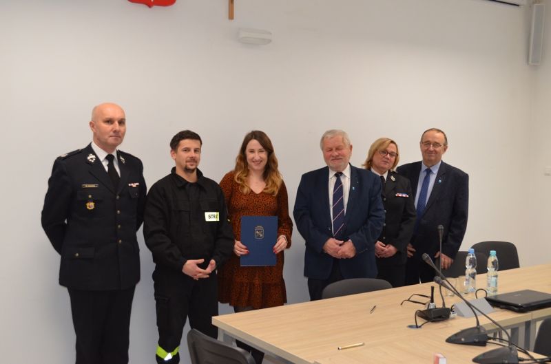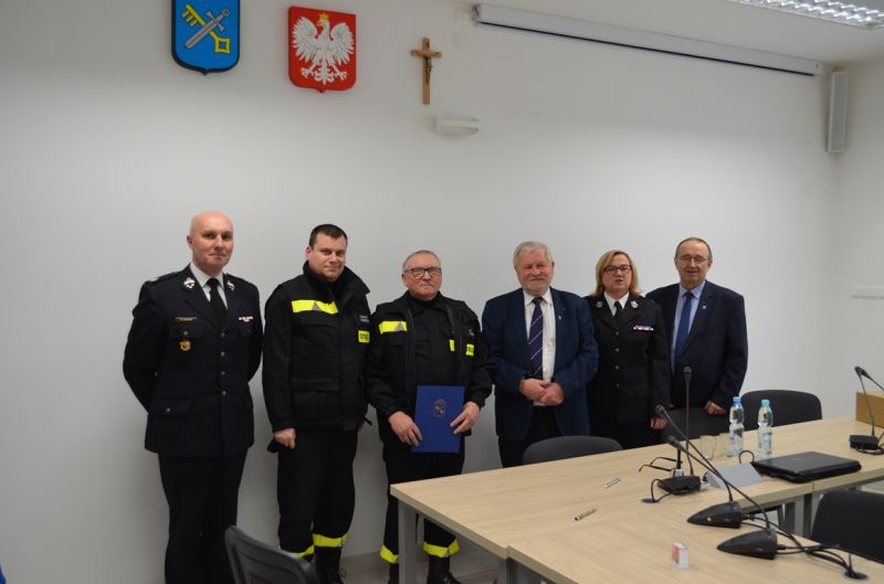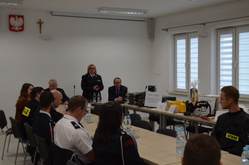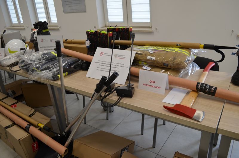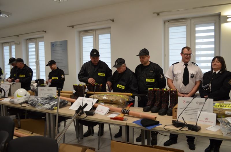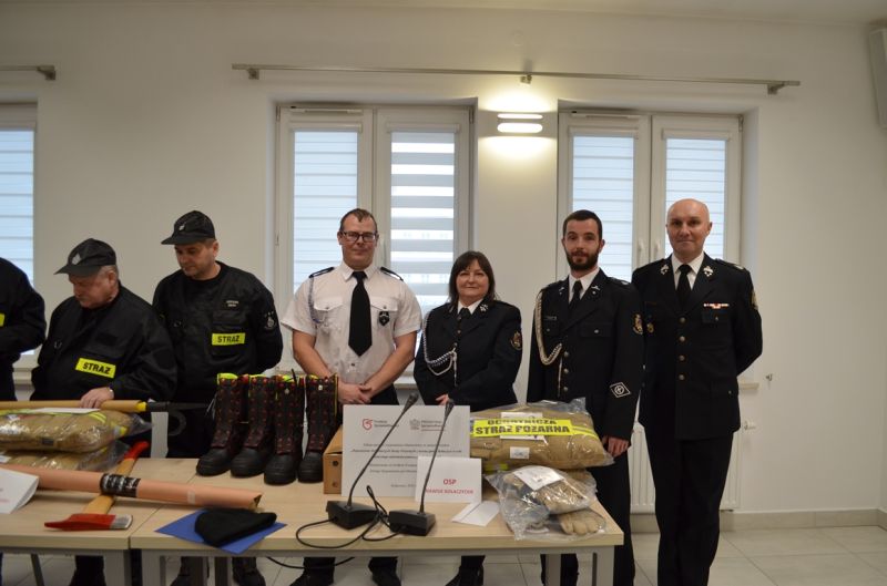 zdjęcie przedstawia przekazanie sprzętu Ochotniczym Strażą Pożarnym