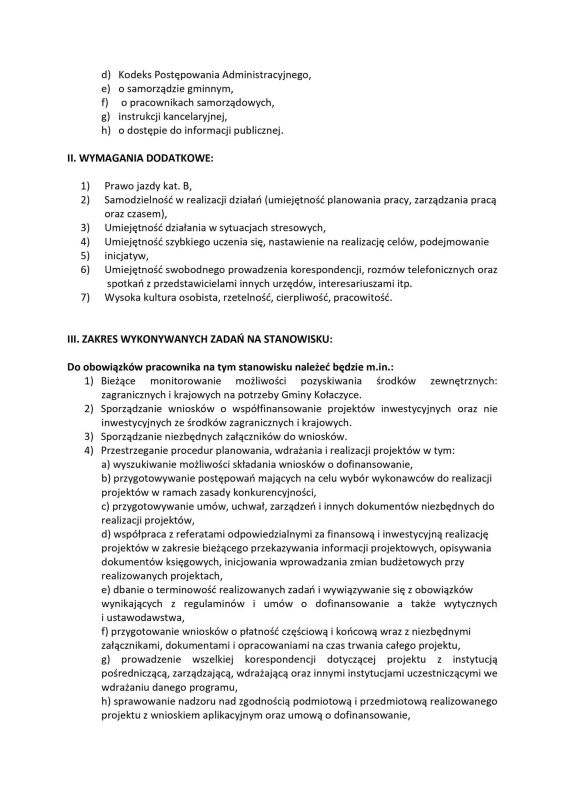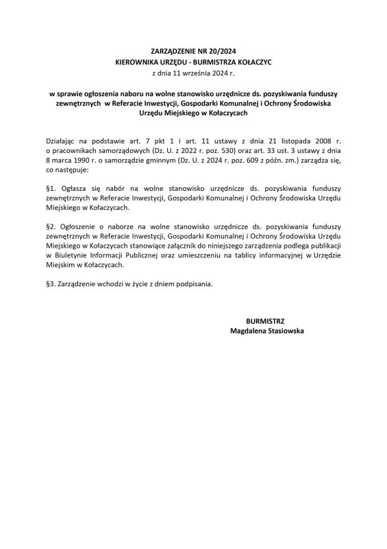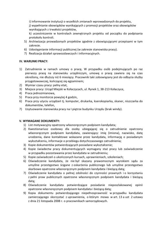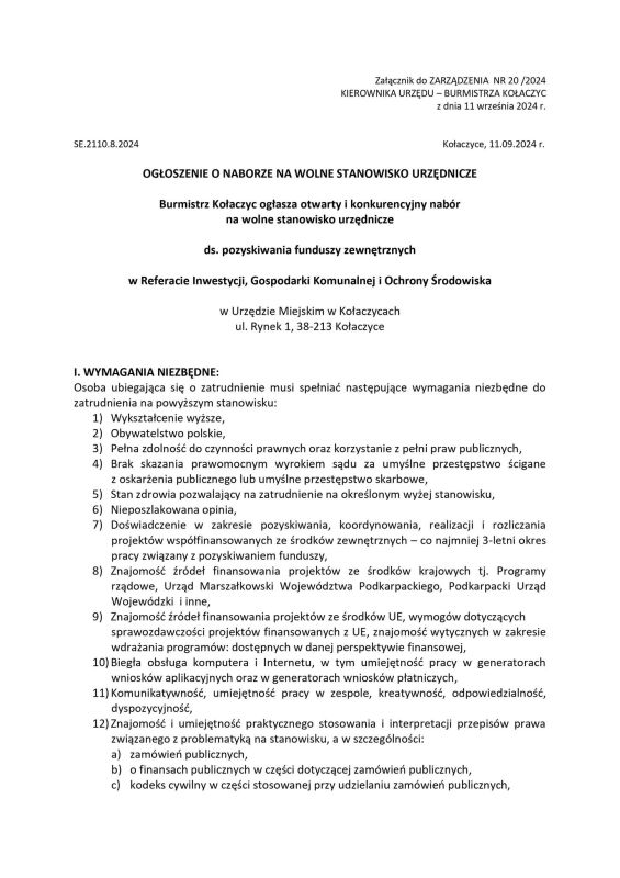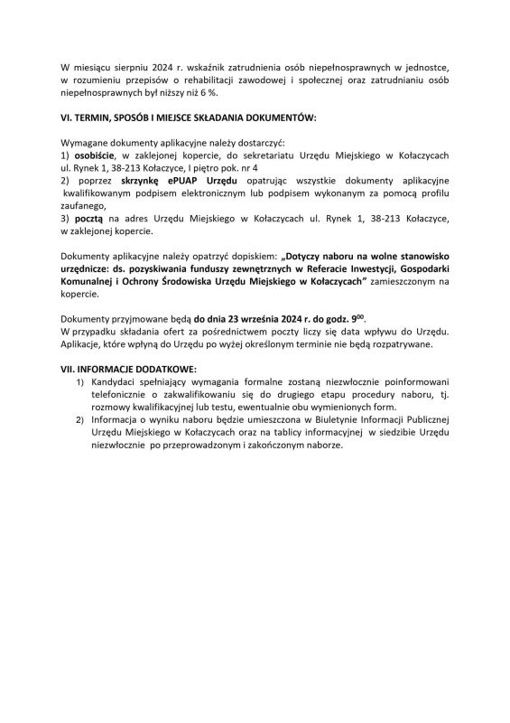 UM NABÓR NA WOLNE STANOWISKO URZĘDNICZE DS. POZYSKIWANIA FUNDUSZY