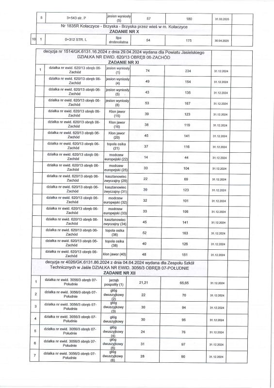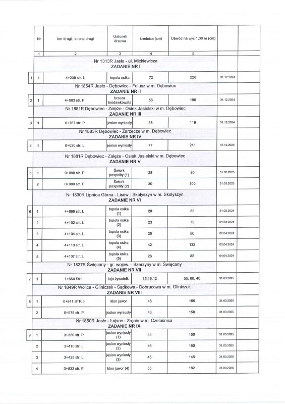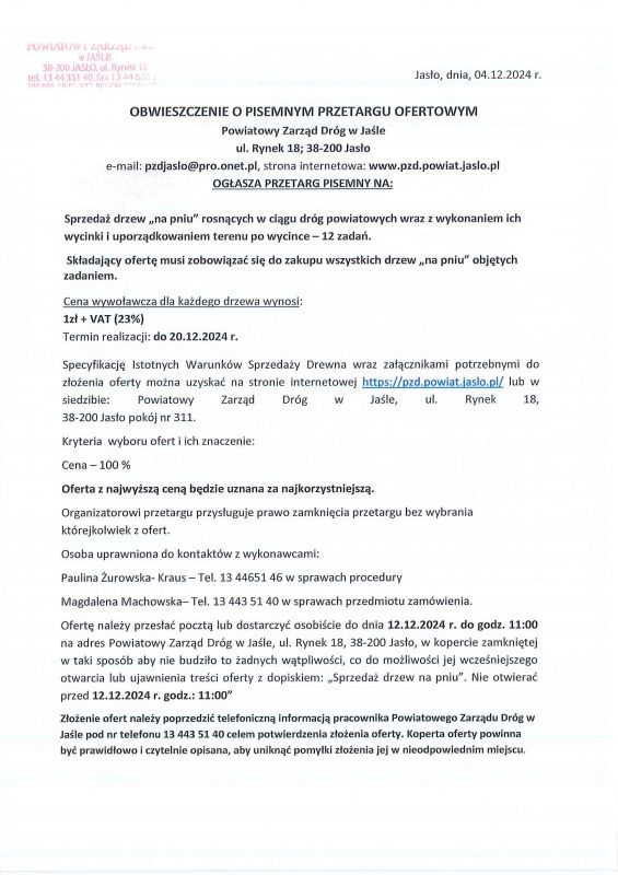 UM INFORMACJE NA TEMAT PRZETARGU DOTYCZĄCEGO SPRZEDAŻY DRZEW NA TERENIE GMIN ORAZ MIAST POWIATU JASIELSKIEGO