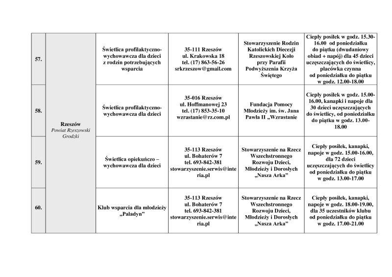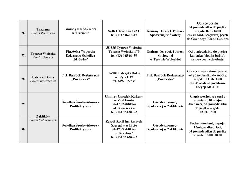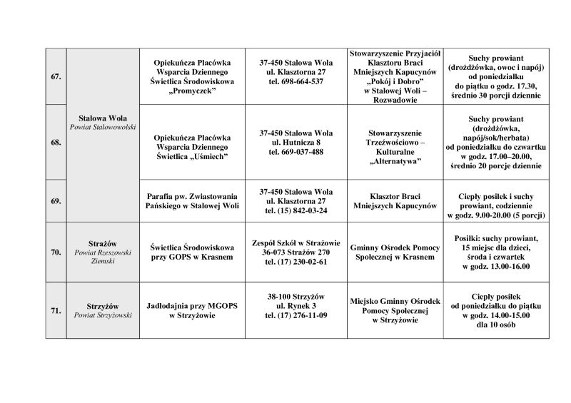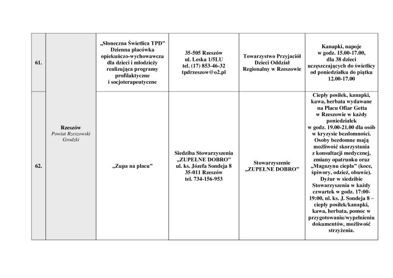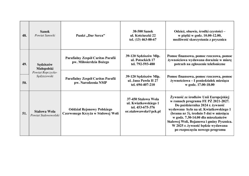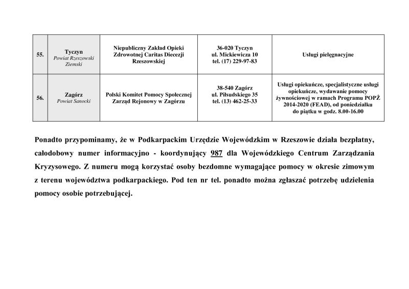 UM WYKAZ PLACÓWEK UDZIELAJĄCYCH WSPARCIA OSOBOM POTRZEBUJĄCYM W OKRESIE ZIMOWYM 2024/2025
