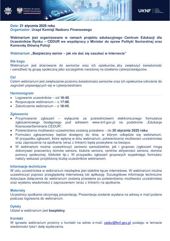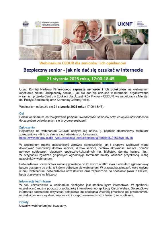 UM WEBINARIUM DLA SENIORÓW I ICH OPIEKUNÓW