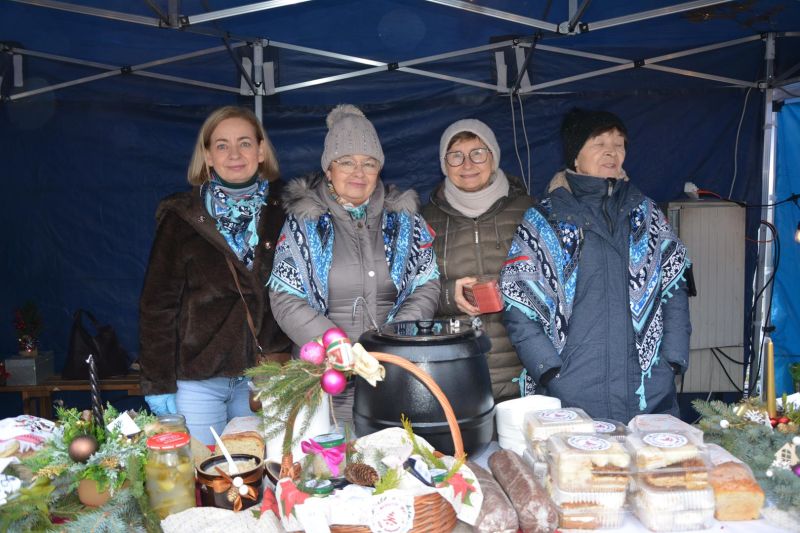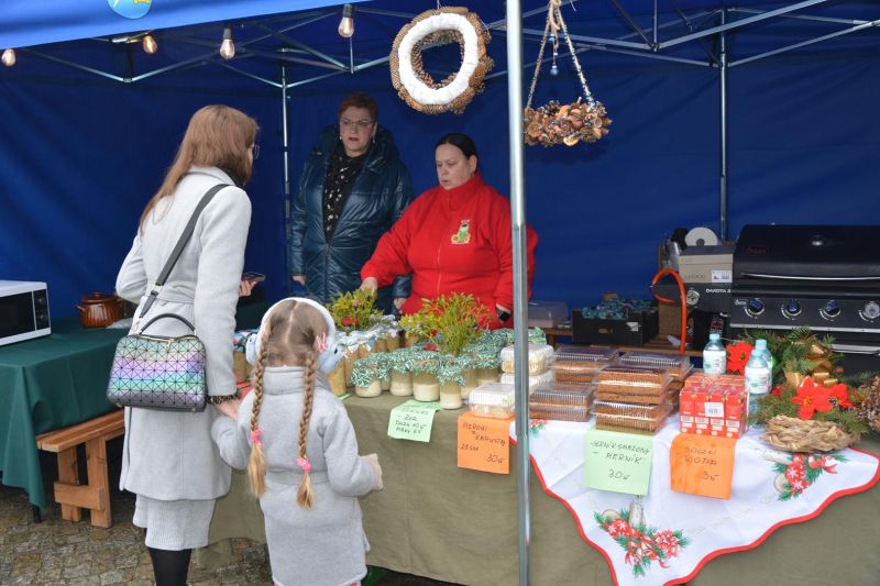 Uczestnicy jarmarku mogli zakupić ozdoby świąteczne oraz popróbować regionalnych pyszności. Były gorące zupy i kiełbaski z grilla. Nie zabrakło oczywiście proziaków ze smalczykiem.