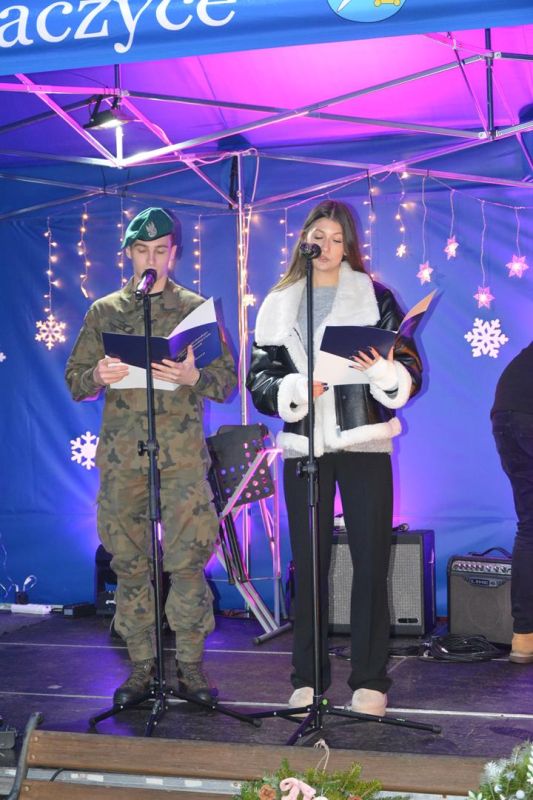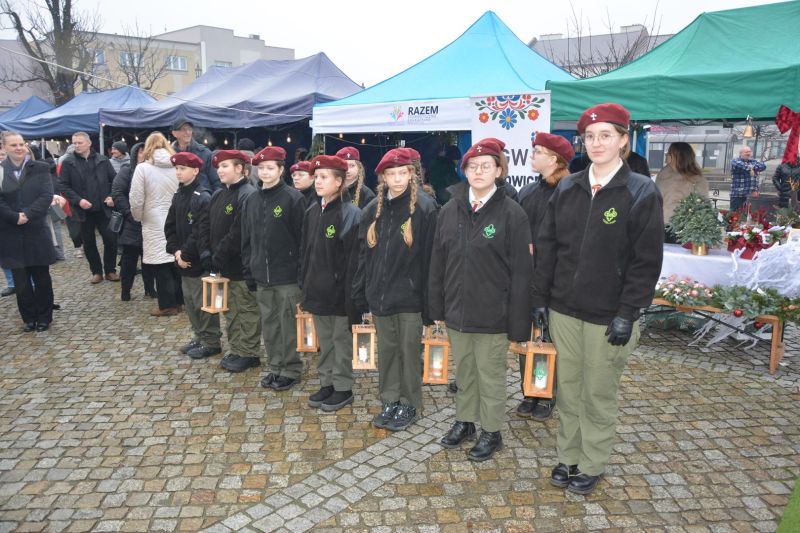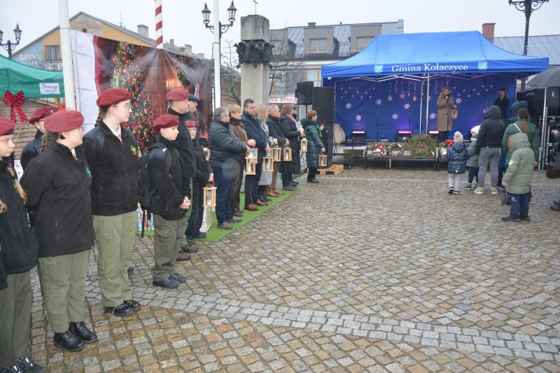 W dniu 21 grudnia 2025 roku na Kołaczyckim rynku odbył się wyjątkowy Jarmark Bożonarodzeniowy, który licznie zgromadził mieszkańców naszej gminy i gości. Wydarzenie rozpoczęło się uroczystym przekazaniem Betlejemskiego Światełka Pokoju przez Kołaczyckich harcerzy na ręce Pani Burmistrz Magdaleny Stasiowskiej oraz przedstawicieli szkół i instytucji, co było symbolicznym i wzruszającym momentem spotkania.
