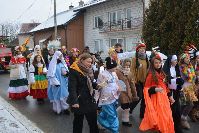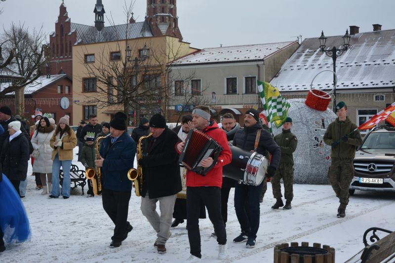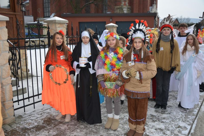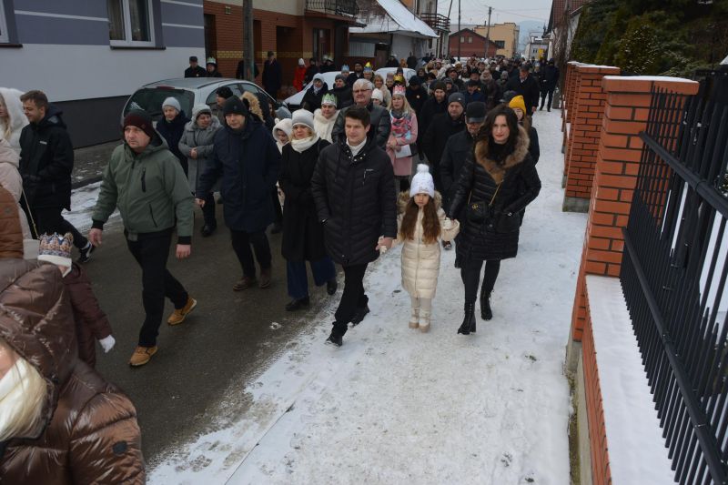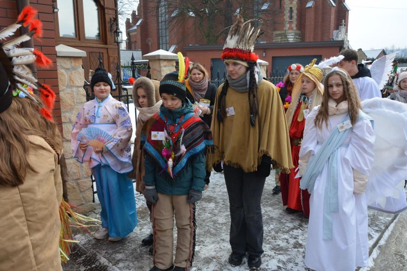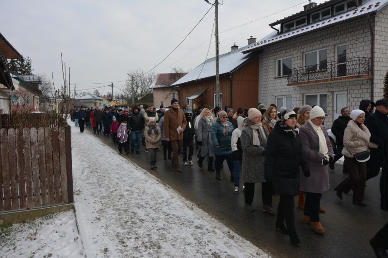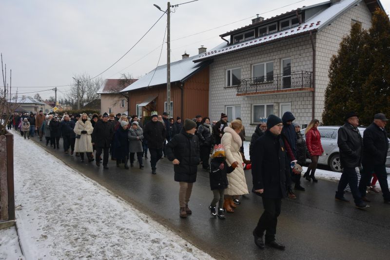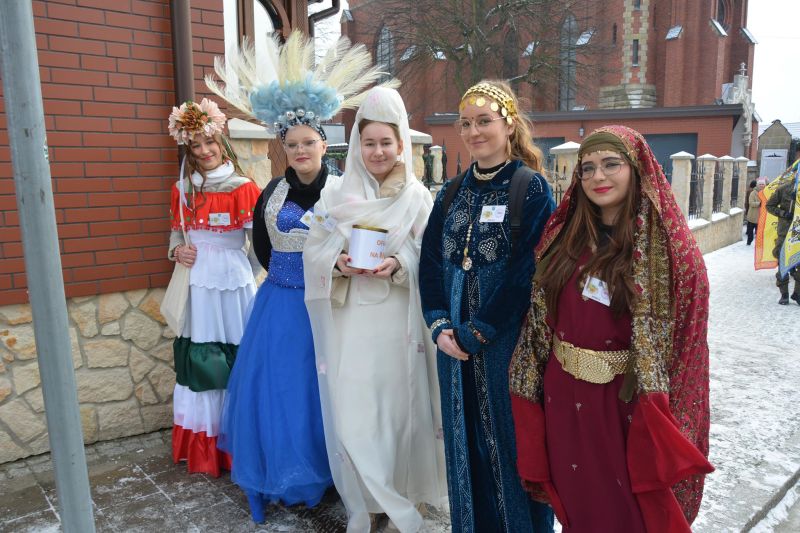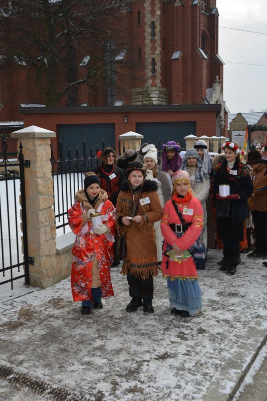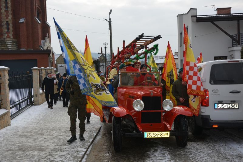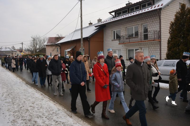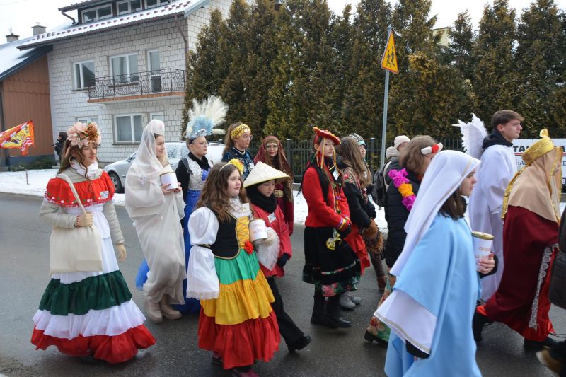Barwny pochód wyruszył po zakończonej Mszy Świętej. Na jego czele maszerowali strzelcy z LO Kołaczyce, wyznaczając trasę przemarszu. Za nimi podążali Kolędnicy Misyjni, a następnie Trzej Królowie. W tegorocznej edycji w postacie Mędrców wcielili się kapłani z naszej parafii, którzy do miejsca pokłonu przyjechali zabytkowym wozem strażackim. Dalej do orszaku dołączali mieszkańcy, tworząc kolorowy i rozśpiewany pochód. Oprawa muzyczna, prowadzona przez organistę pana Krzysztofa Palara, któremu towarzyszył zespół muzyczny sprawiła, że kolędy rozbrzmiewały w całym mieście.