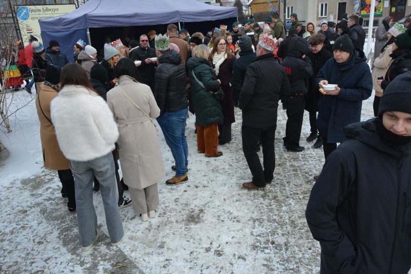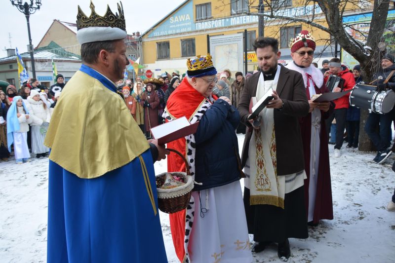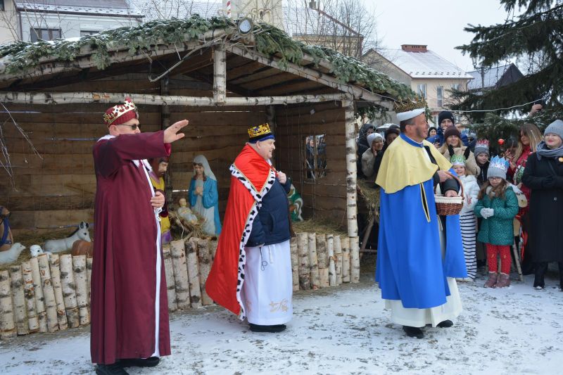 Zwieńczeniem wydarzenia było dotarcie na Rynek, gdzie przy szopce odbyła się główna część uroczystości. Kapłani w królewskich strojach oddali pokłon Dzieciątku Jezus i złożyli symboliczne dary. Po zakończeniu tej części dzieci zostały obdarowane słodyczami, co wywołało wiele radości i uśmiechów.