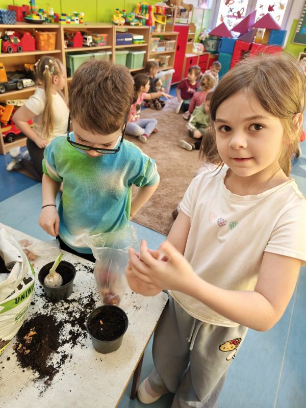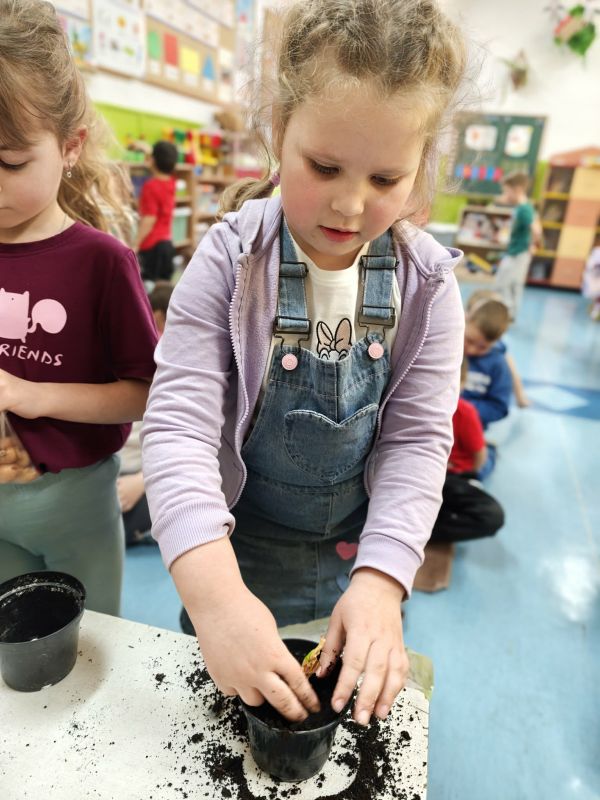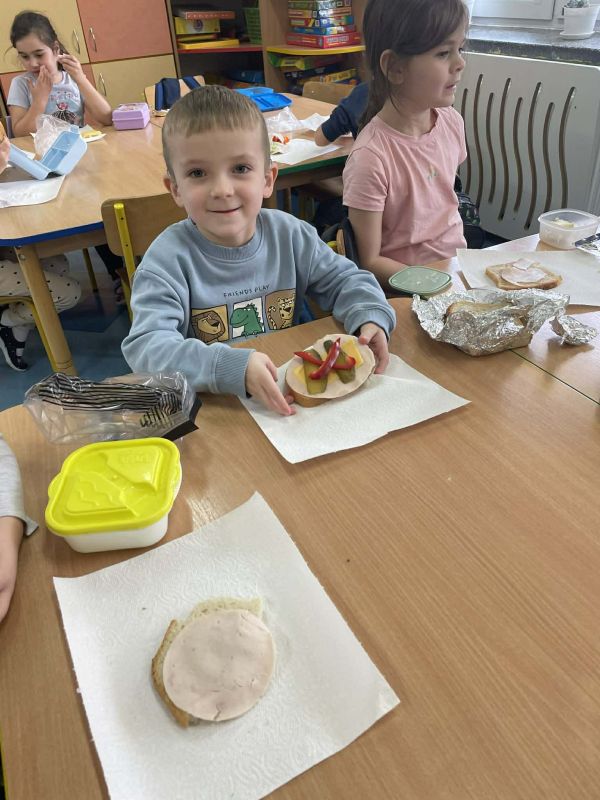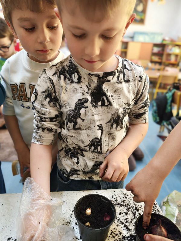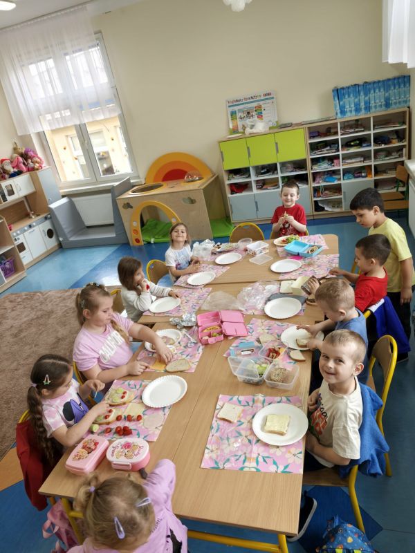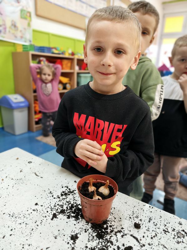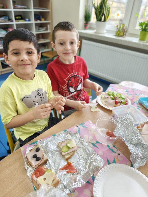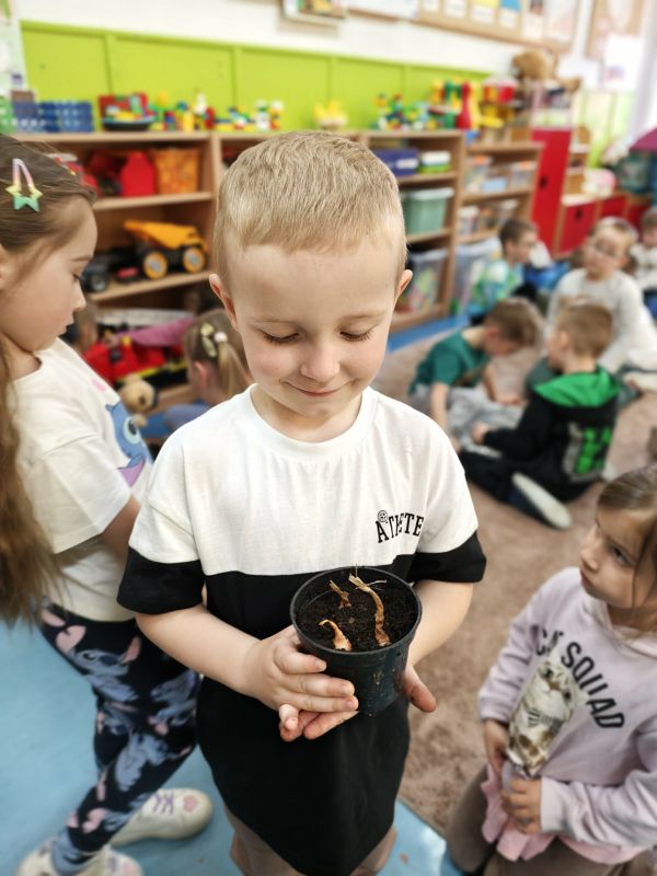 Wraz z nadejściem pierwszych ciepłych dni, oddziały przedszkolne 0 a i 0 b wraz z wychowawcami z radością powitały długo wyczekiwaną wiosnę. Był to czas pełen aktywności, odkrywania przyrody oraz wspólnej zabawy. W ramach zajęć przyrodniczych przedszkolaki samodzielnie (przy drobnej pomocy pań wychowawczyń :) ) sadziły rzeżuchę oraz cebulki, poznając podstawy pielęgnacji roślin i ucząc się cierpliwości w oczekiwaniu na efekty swojej pracy. Wielką radość sprawiły im także wiosenne kanapki, które nie tylko pięknie wyglądały, ale również były zdrowe i smaczne. Nie zabrakło również spotkania z Panią Małgorzatą Czech z biblioteki, która zaprosiła dzieci do świata wiosennych opowieści i czytanek. W trakcie zajęć przedszkolnych dzieci poznawały wiosenne kwiaty oraz ptaki, które przylatują do Polski wraz z nadejściem cieplejszych dni. Swoją wiedzę i wrażenia wyrażały poprzez różnorodne prace plastyczne - kolorowe, pełne radości i wiosennego klimatu.
