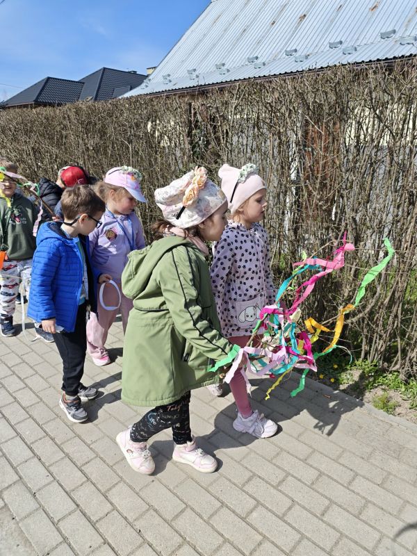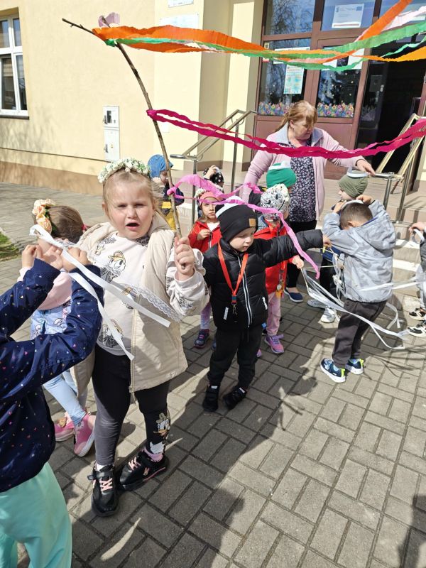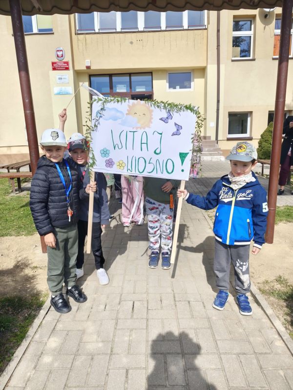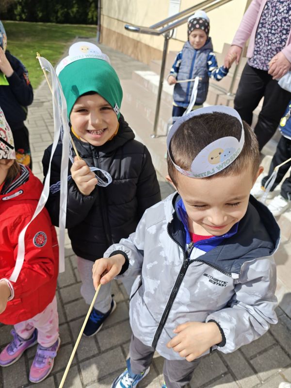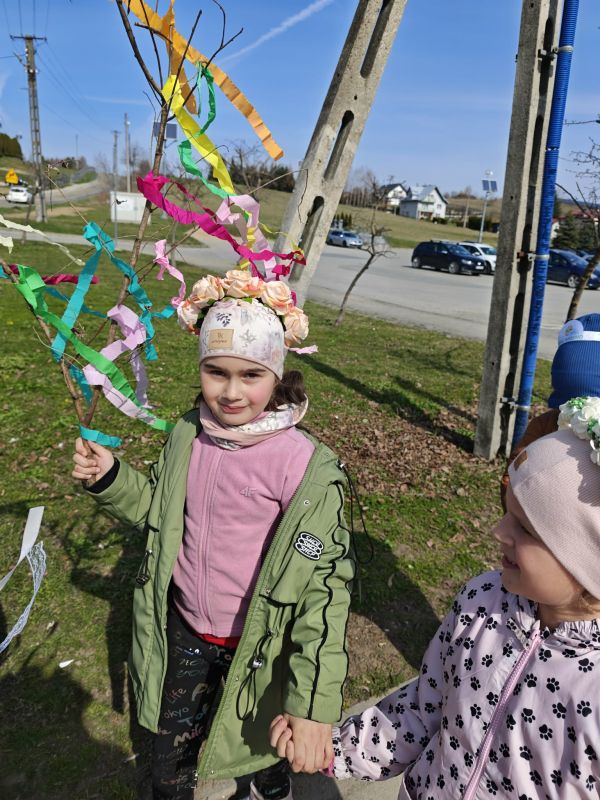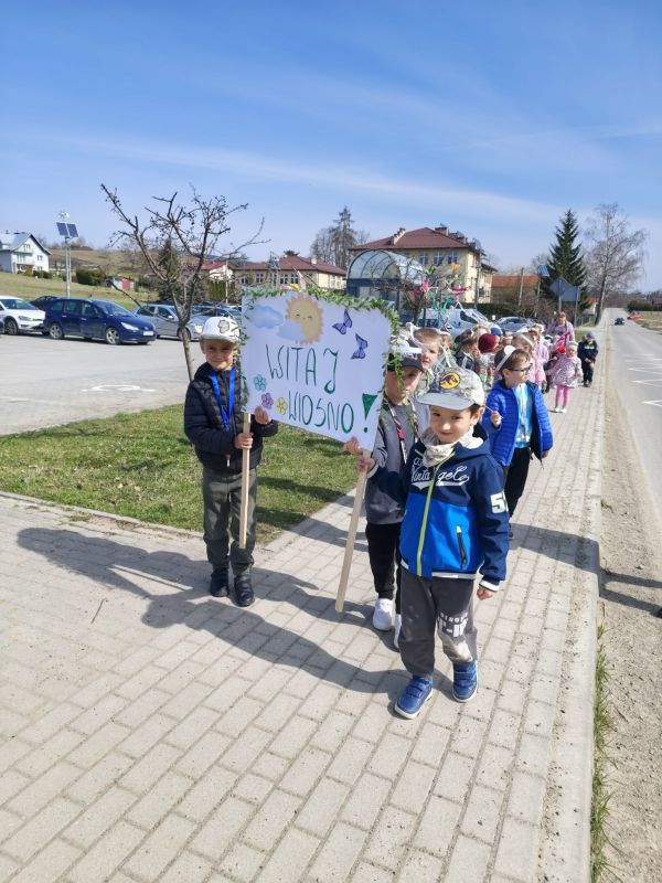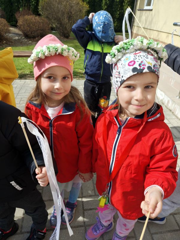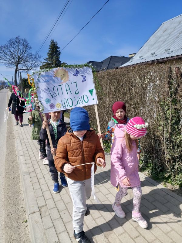 W poniedziałek, 23 marca w słoneczny, wiosenny dzień przedszkolaki wyruszają na kolorowy pochód, by powitać nadchodzącą wiosnę. Dzieci były ubrane w opaski oraz wianki spacerując po okolicznej wiosce trzymając kolorowe wstążki oraz gaiki. Powitanie wiosny w oddziałach 0 a i 0 b było czasem pełnym uśmiechu, kreatywności i wspólnego odkrywania piękna natury. Z niecierpliwością czekamy na kolejne wiosenne dni pełne nowych przygód!
