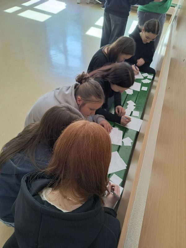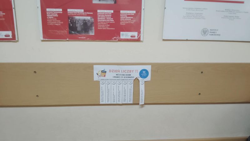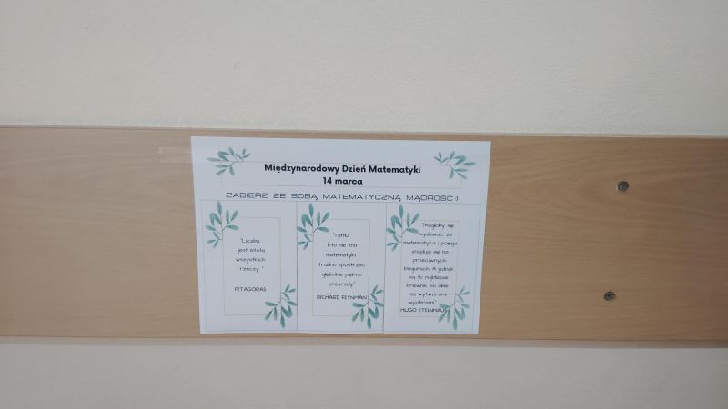 Dodatkowo przez cały tydzień na szkolnych korytarzach były rozwieszone „zrywki” z matematycznymi cytatami oraz dobrym słowem. Każdy mógł oderwać wybraną karteczkę i zatrzymać ją dla siebie lub przekazać dalej, dzieląc się pozytywną energią z innymi.